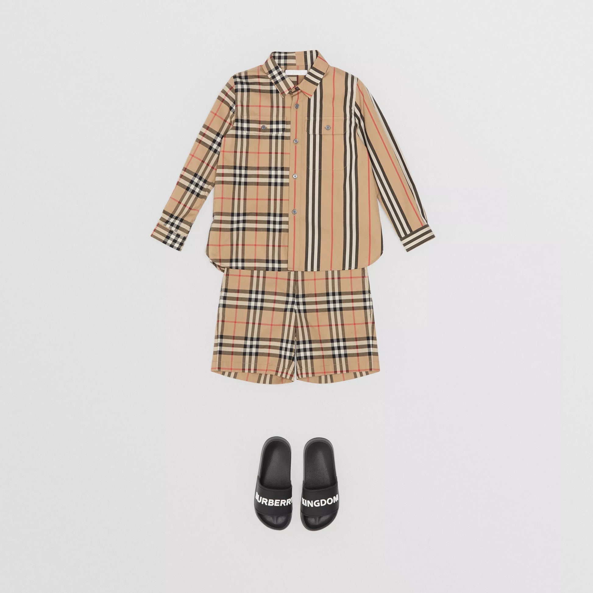 Boys Beige Check Cotton Shorts