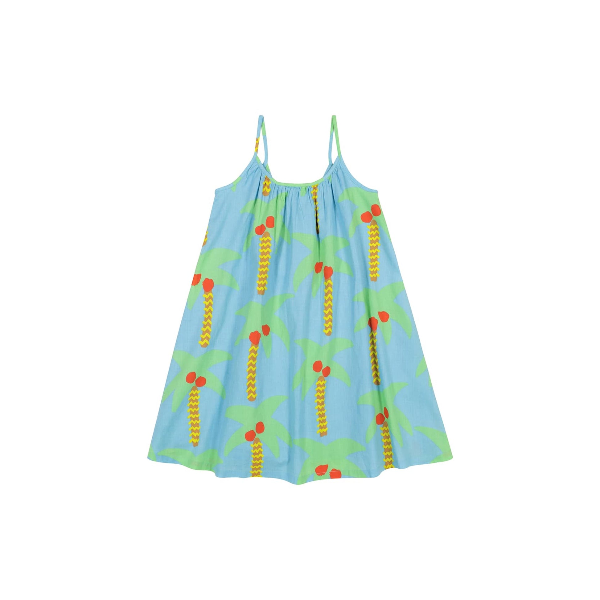 Girls Blue Palm Trees Cotton Dress