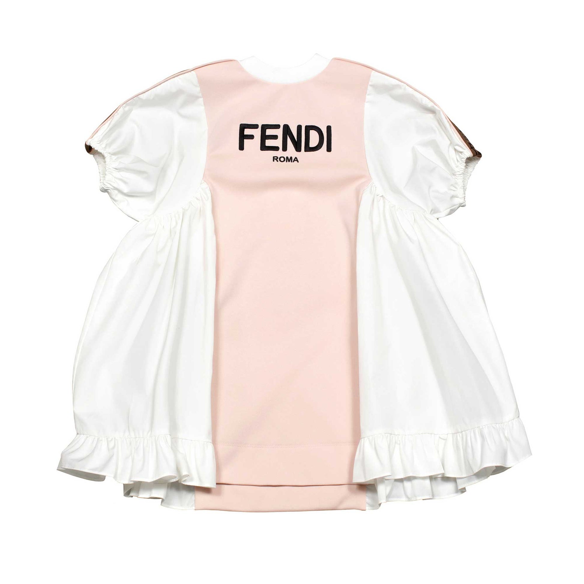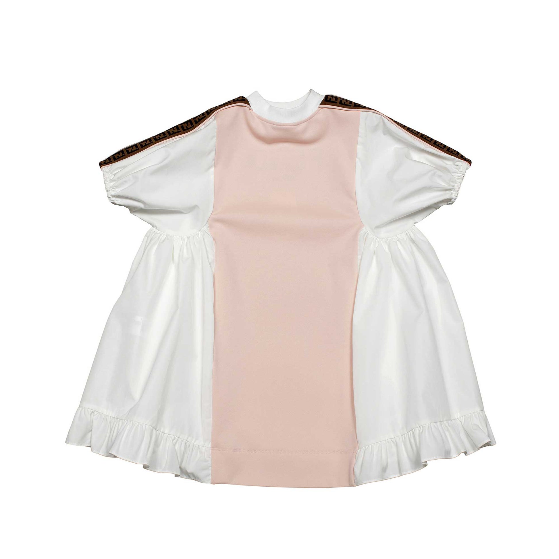 女童白色&粉色Logo棉连衣裙