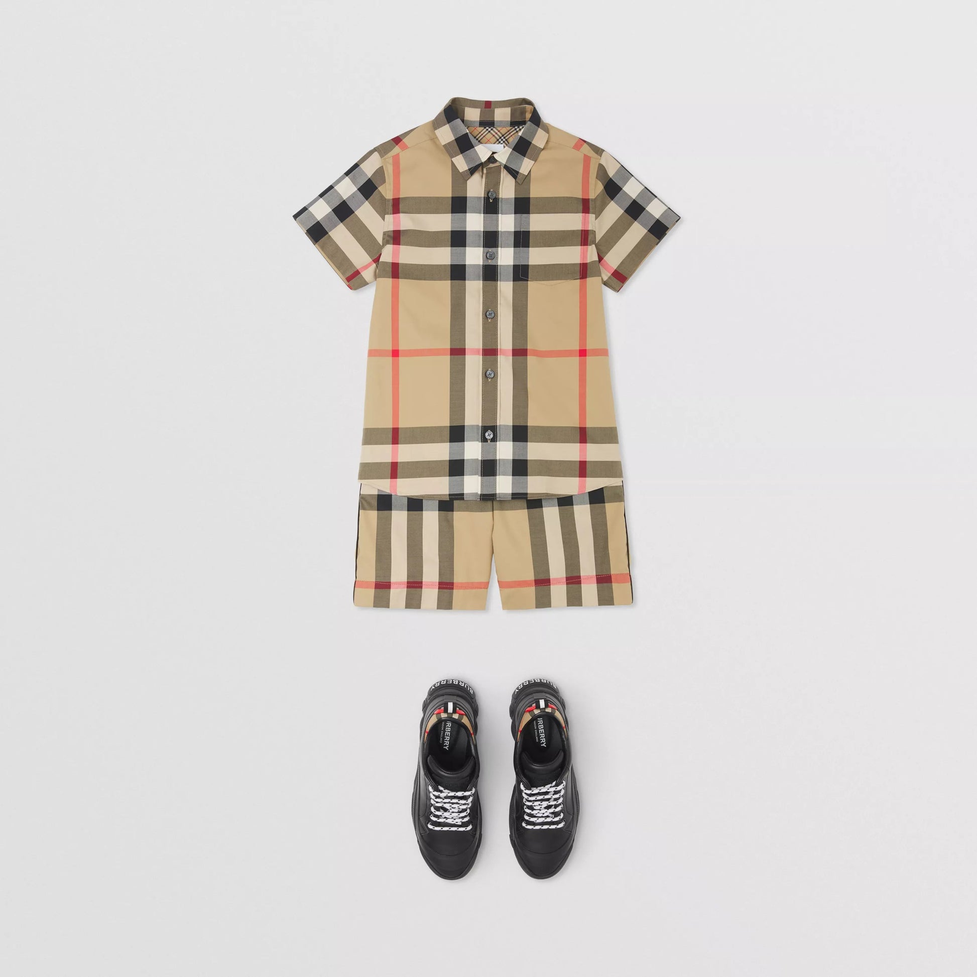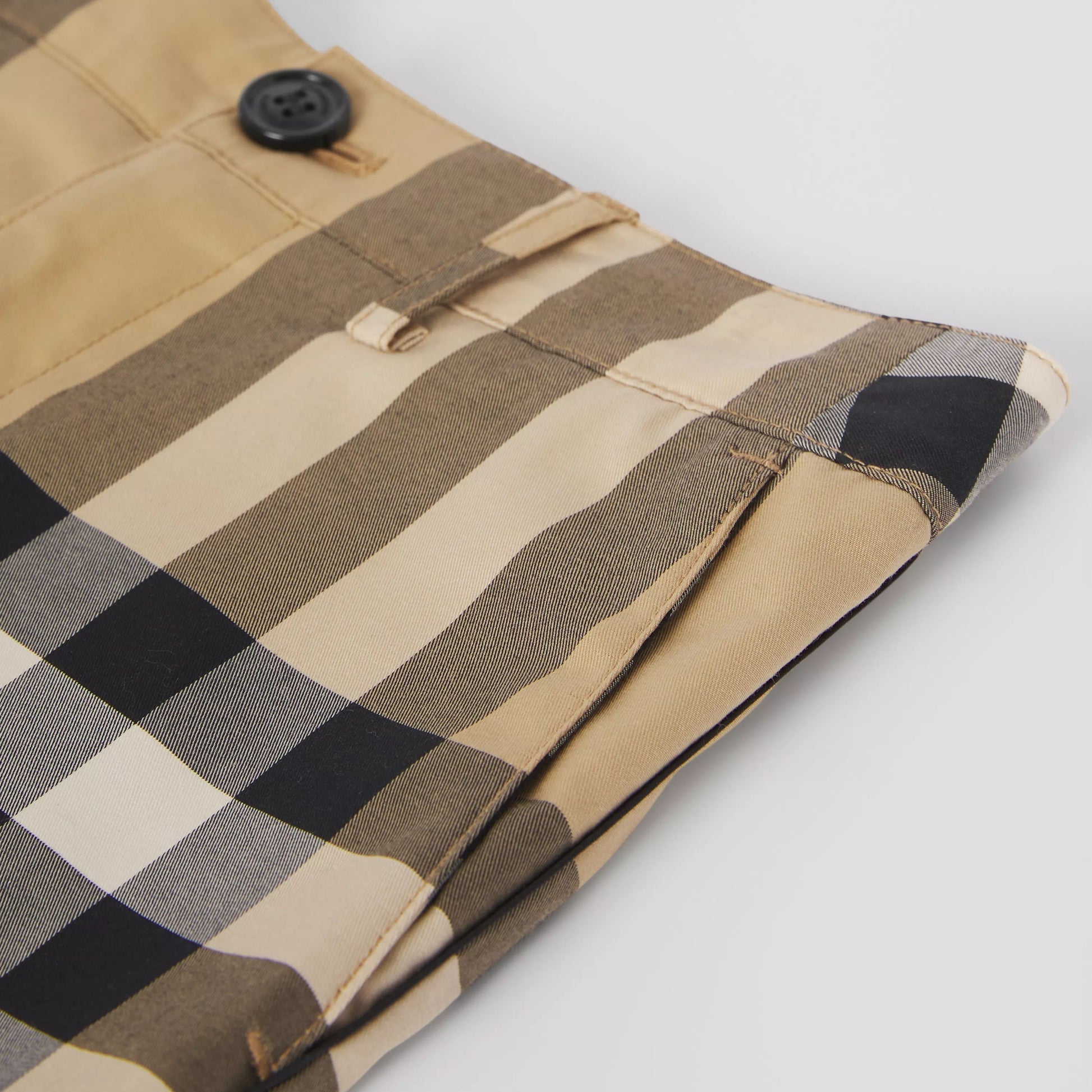 男童米色格子棉短裤