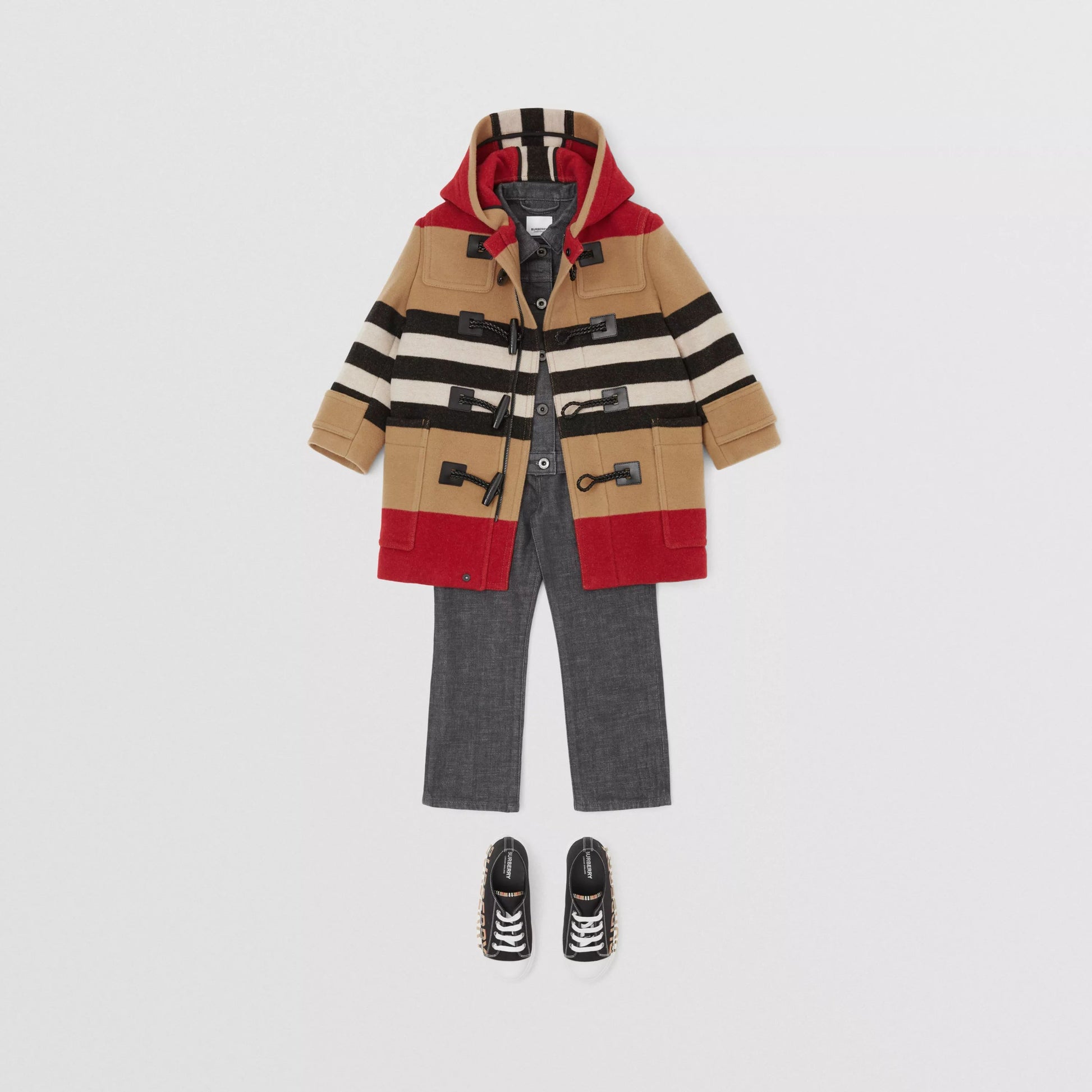 男童米色条纹羊毛外套