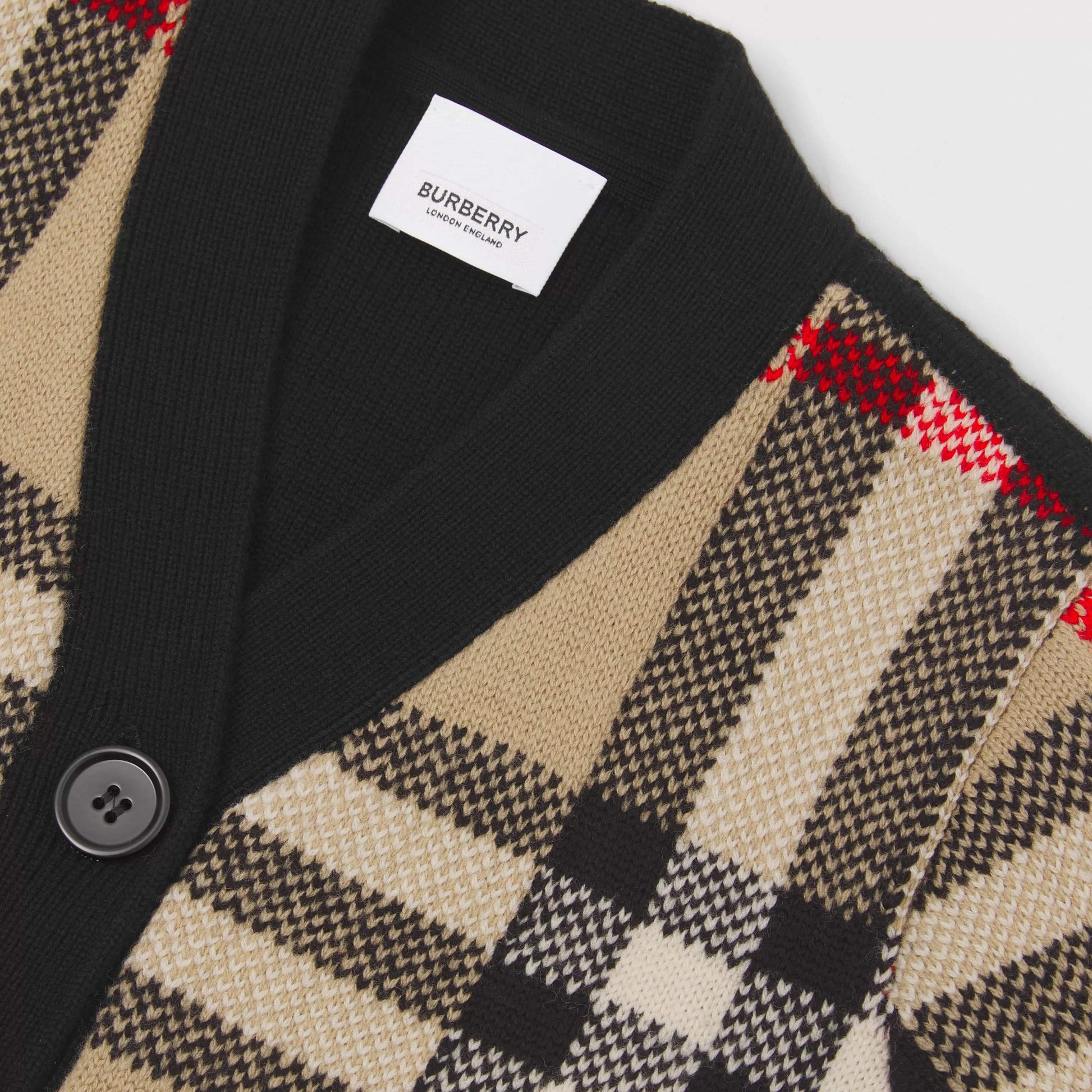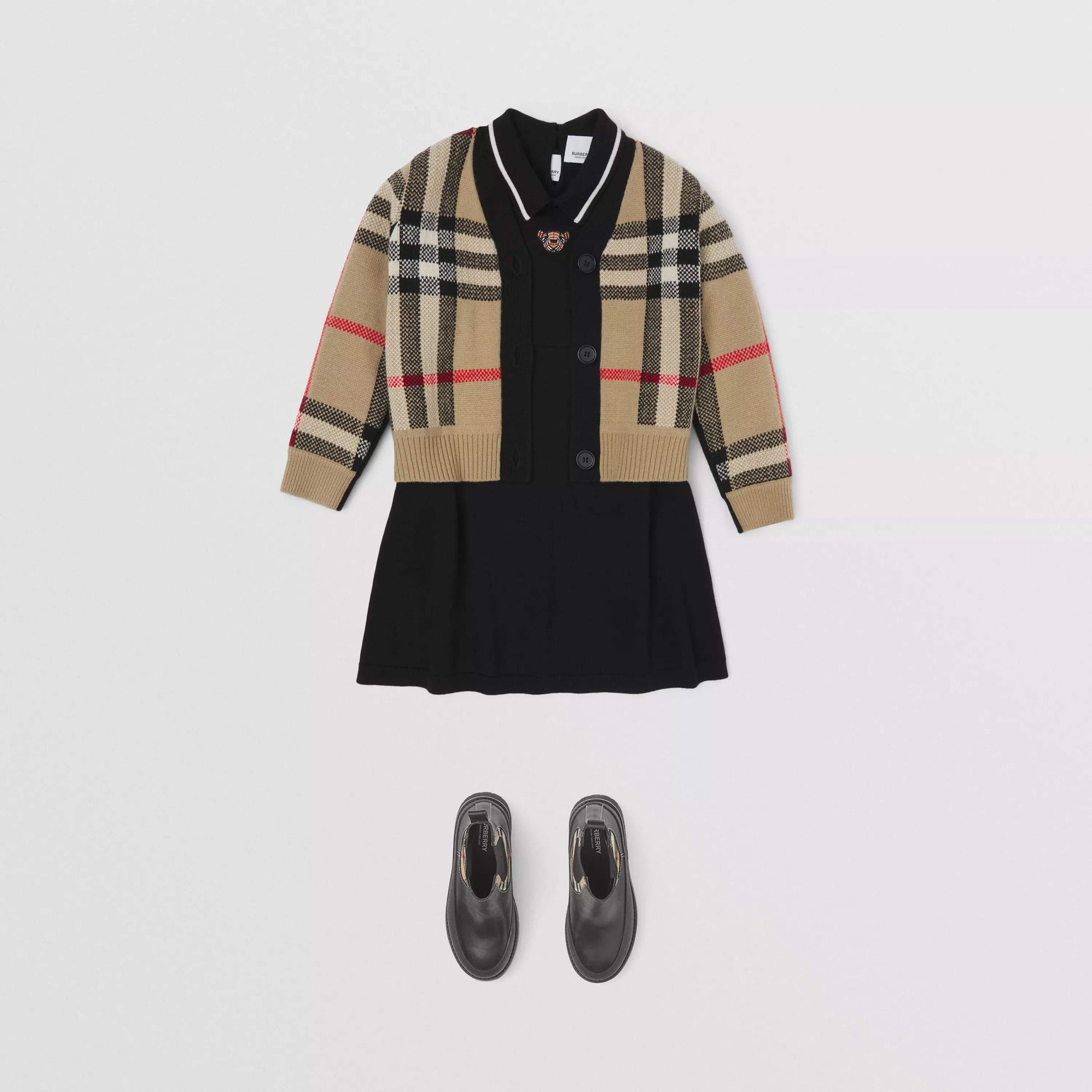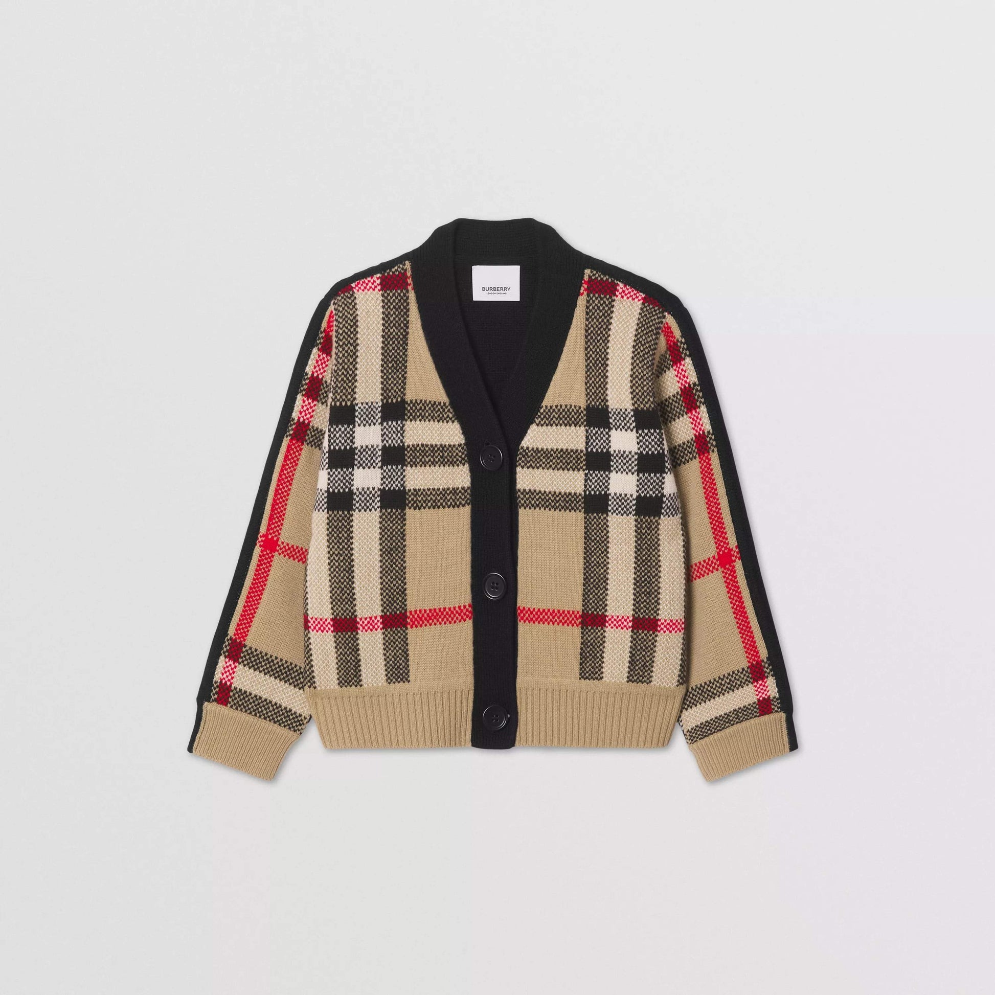女童米色格子羊绒开衫
