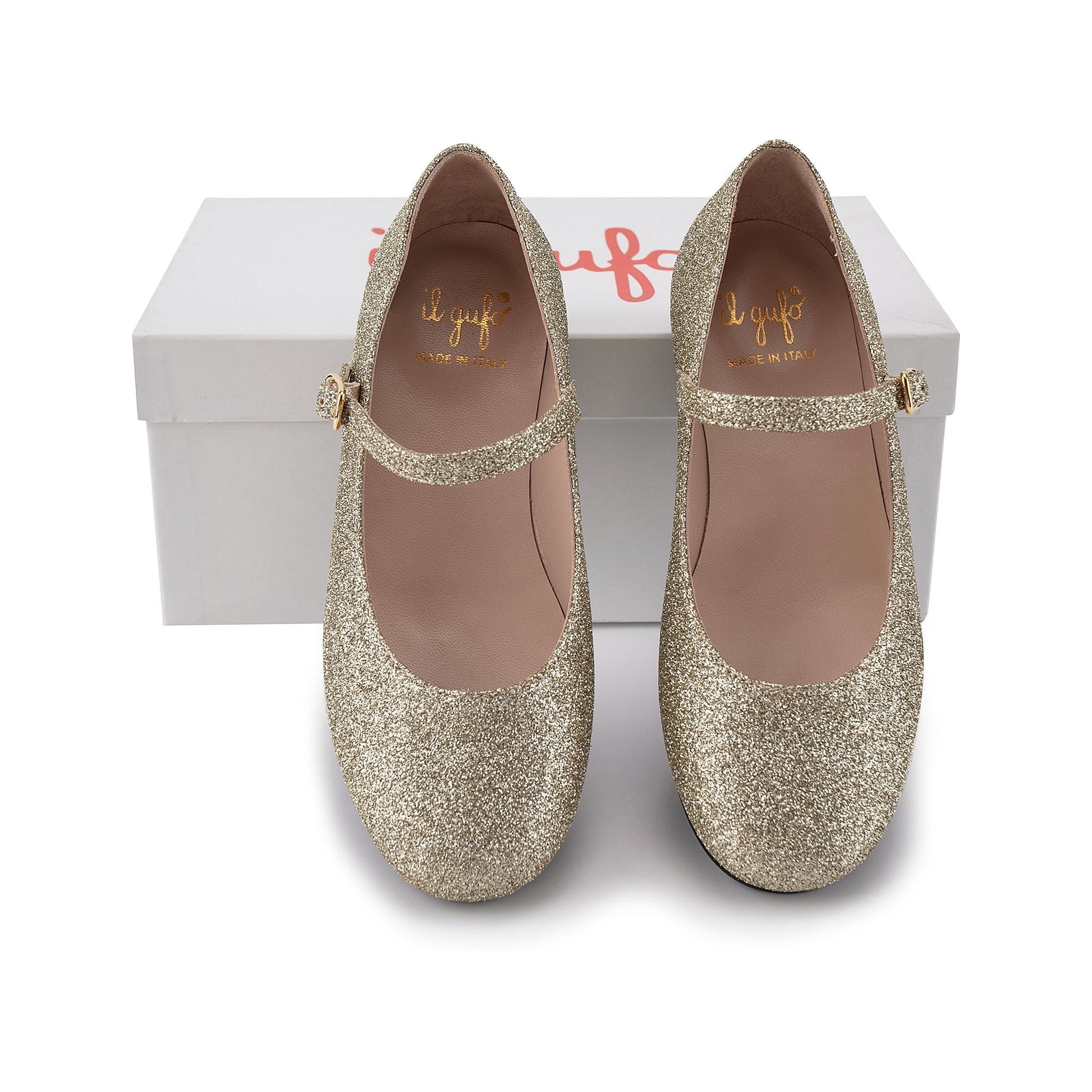 女童金色闪光平底鞋