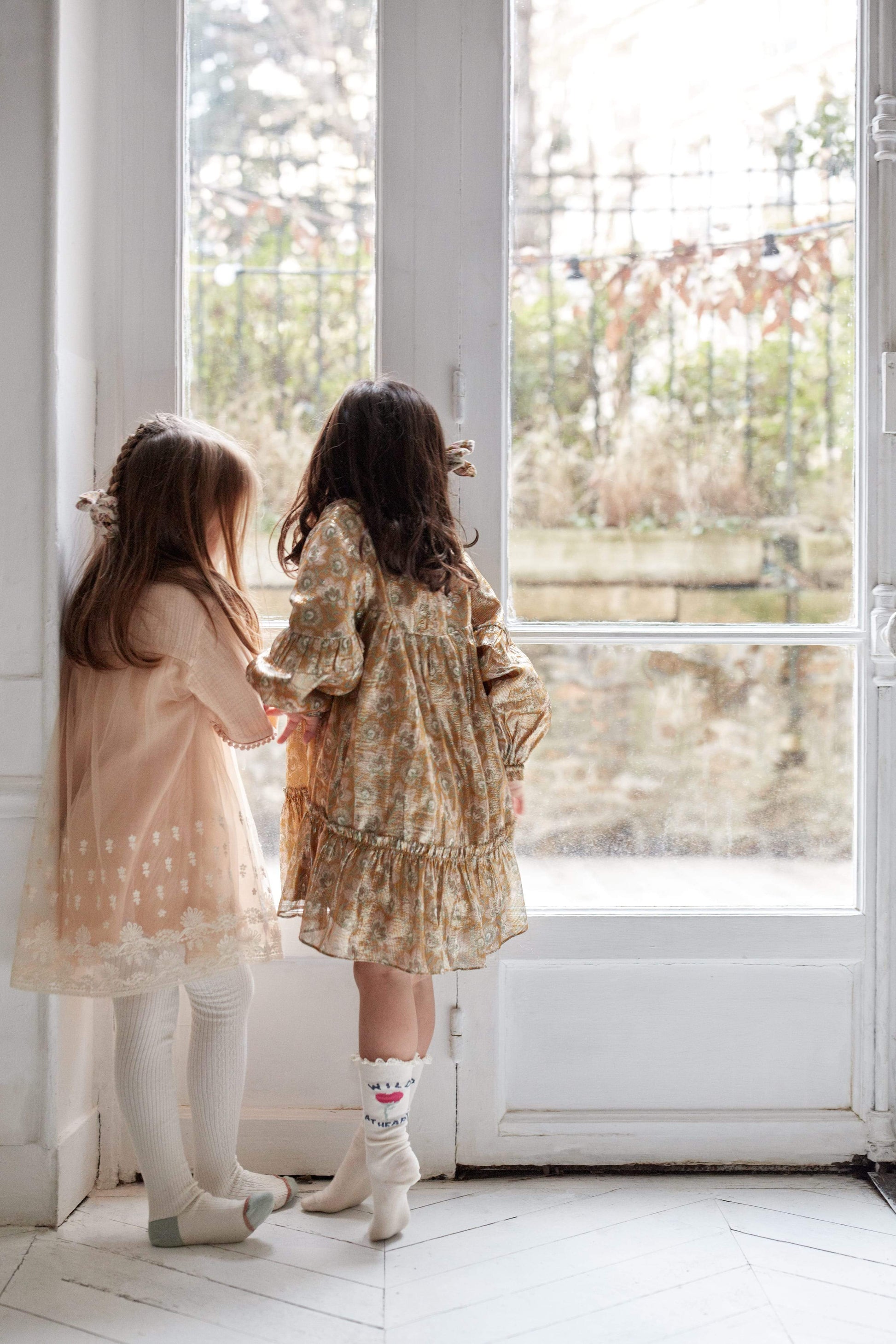 女童粉色刺绣薄纱连衣裙