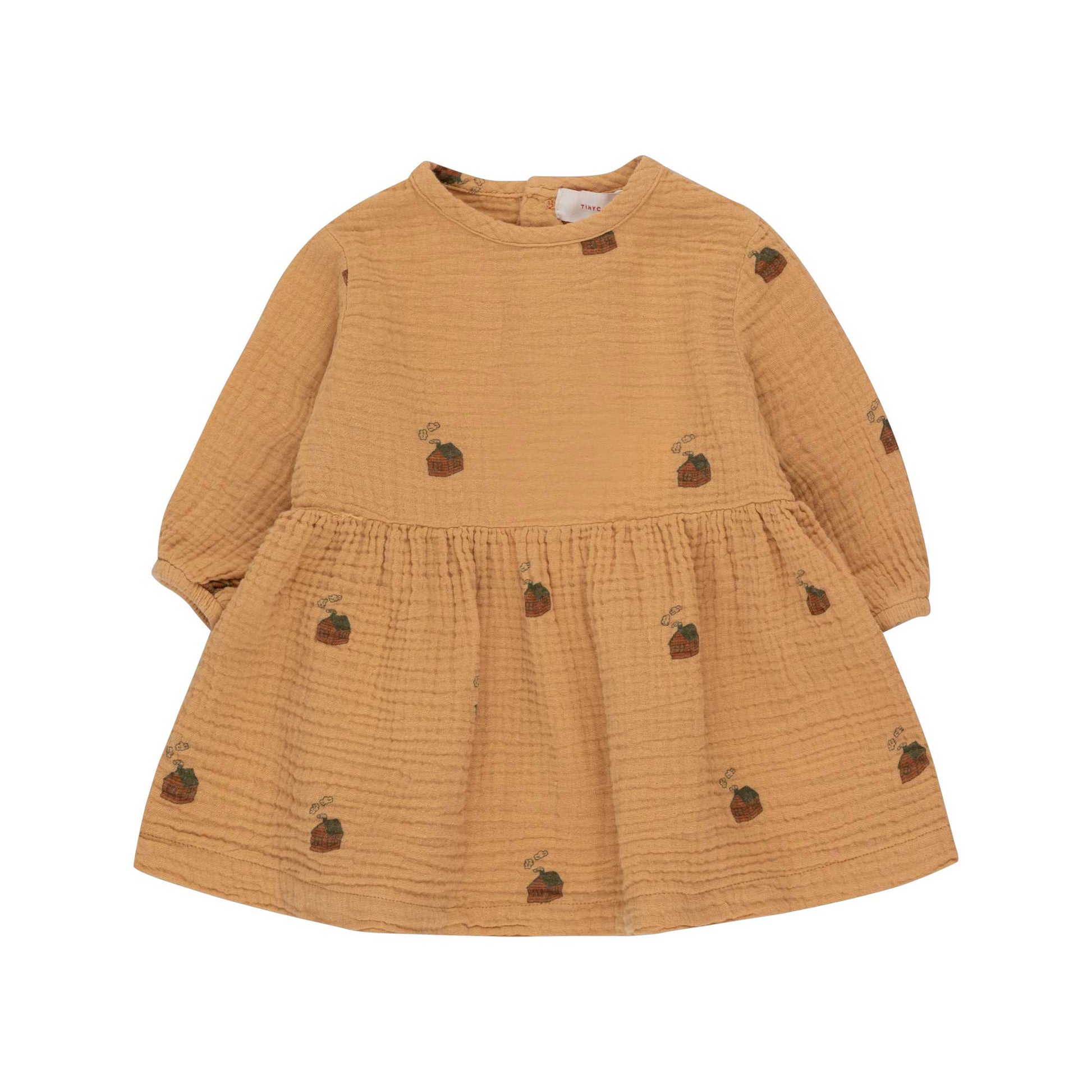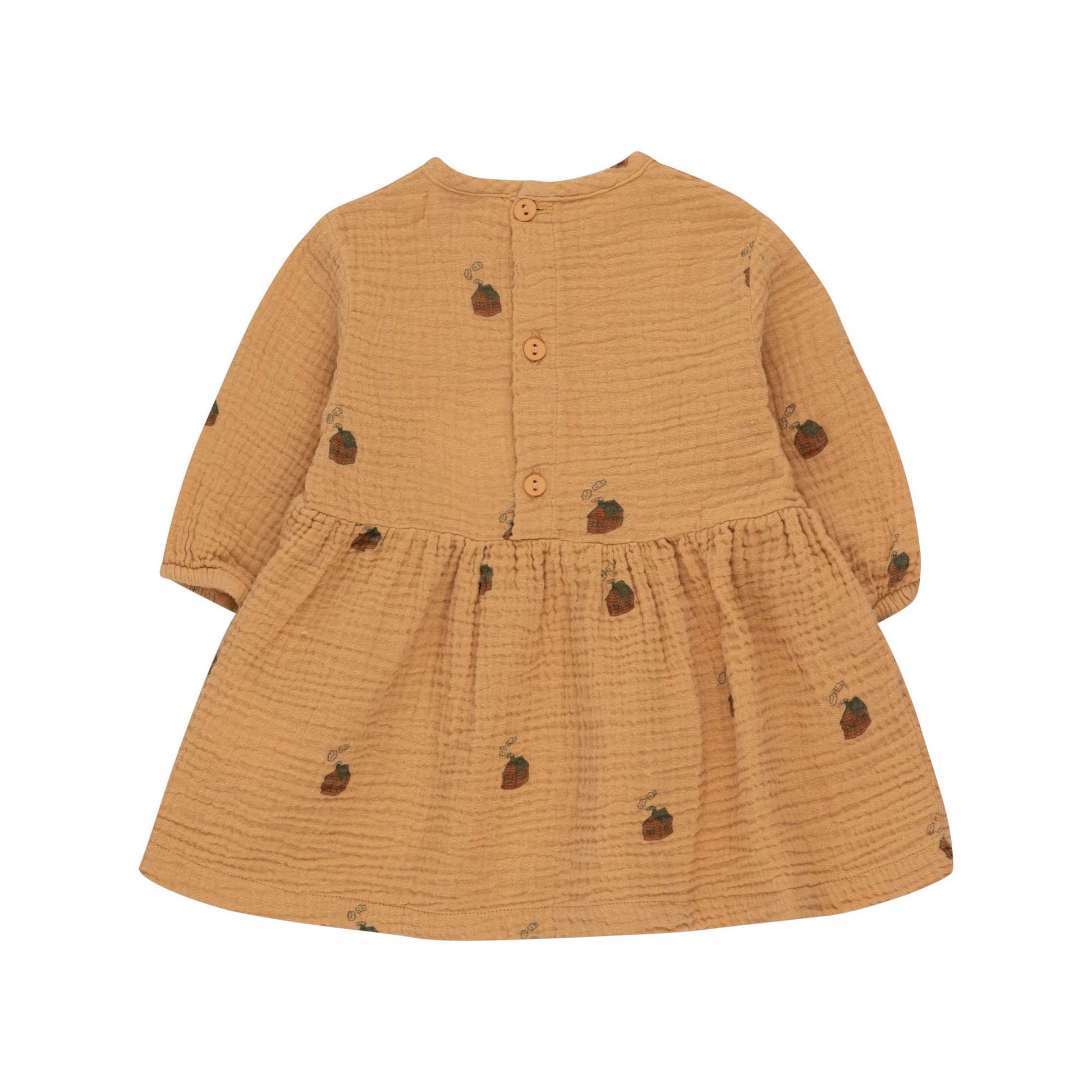 女婴棕色印花棉连衣裙