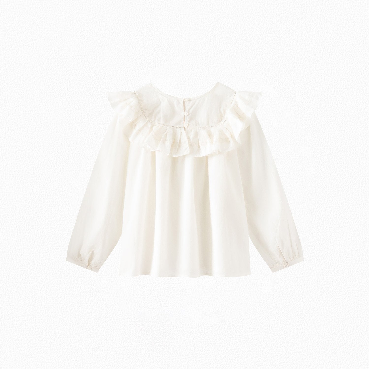女童白色荷叶边棉上衣