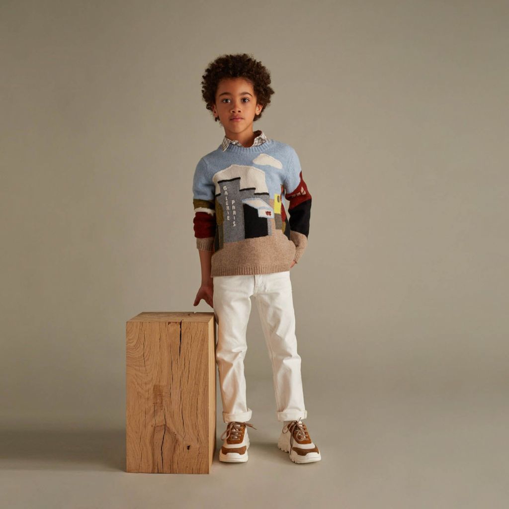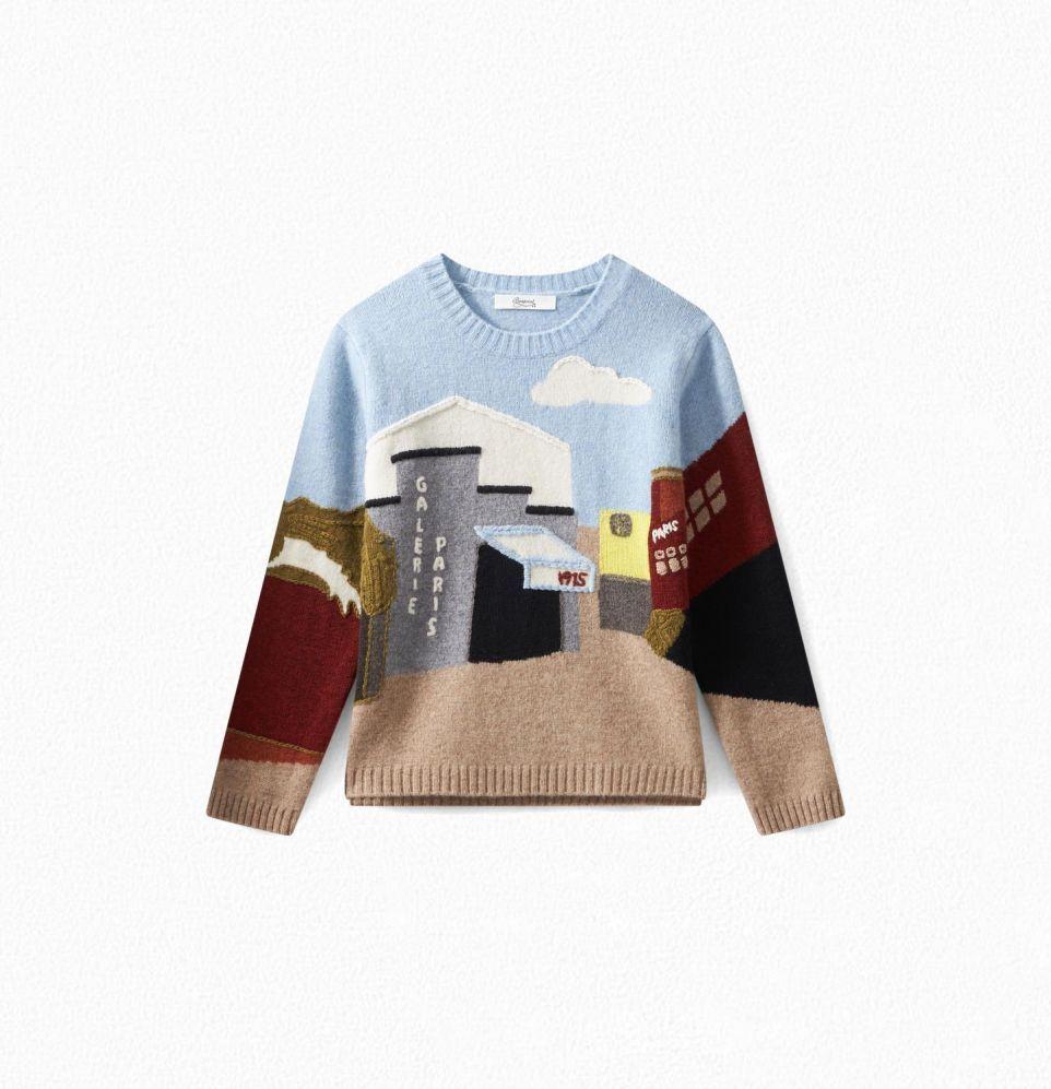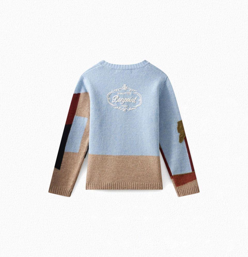 男童蓝色图案羊毛毛衣
