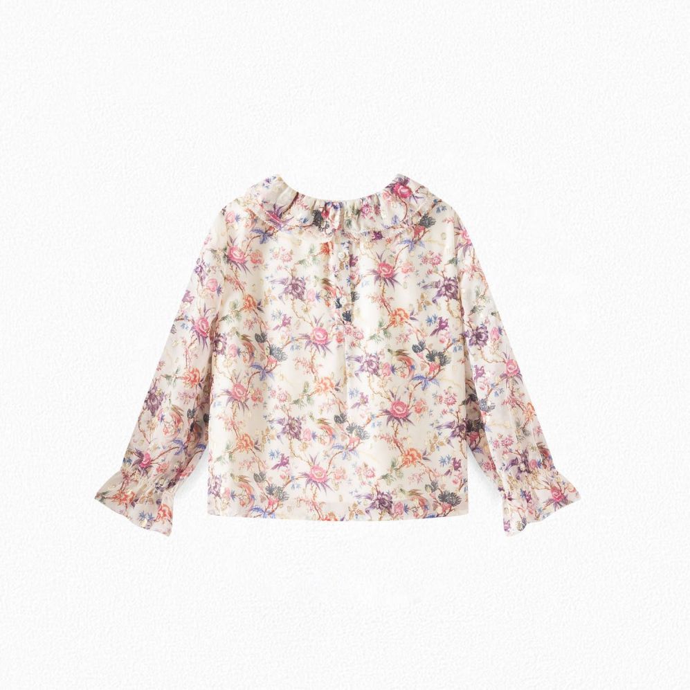 女童米色花朵印花真丝衬衫