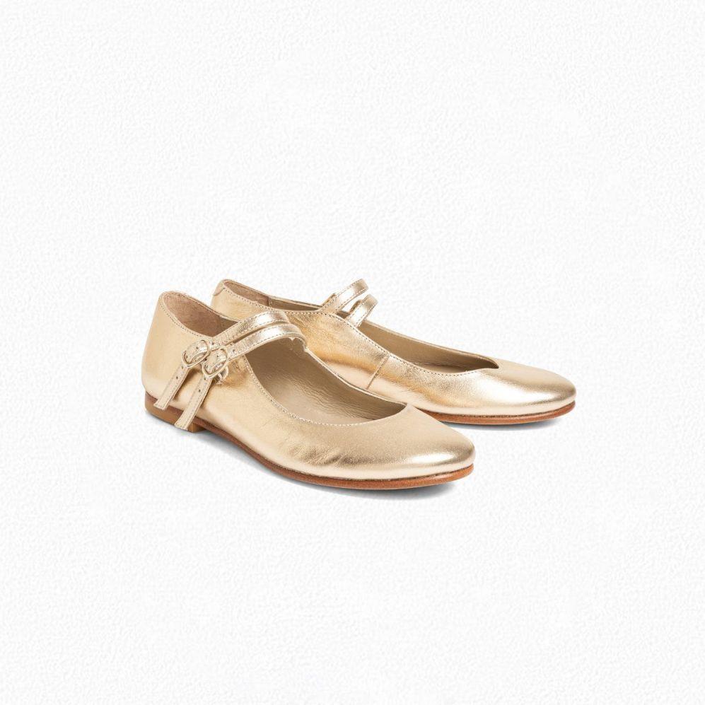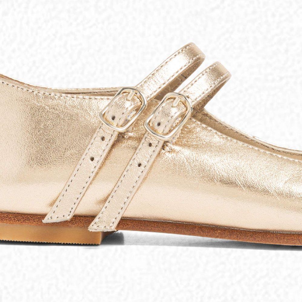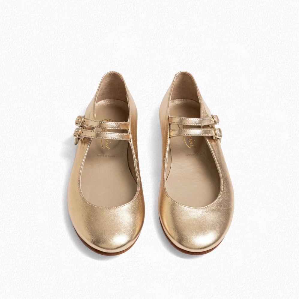 女童金色搭扣皮鞋