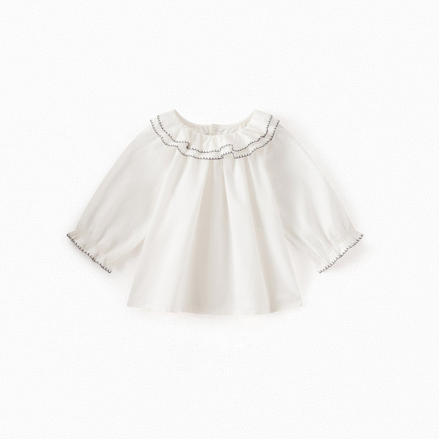 女婴白色荷叶边棉上衣