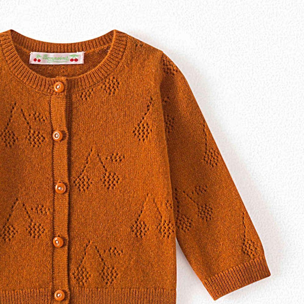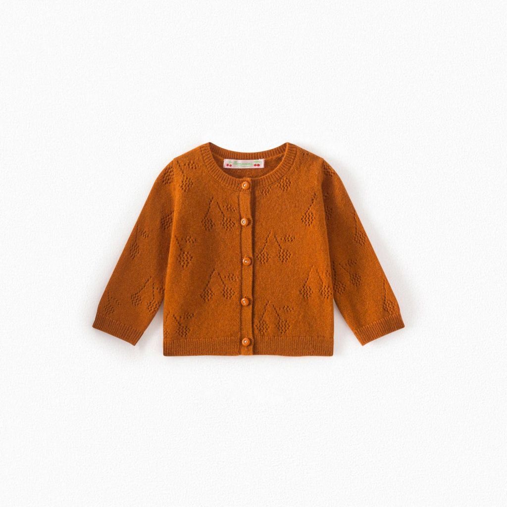 女婴焦糖色Logo羊绒开衫