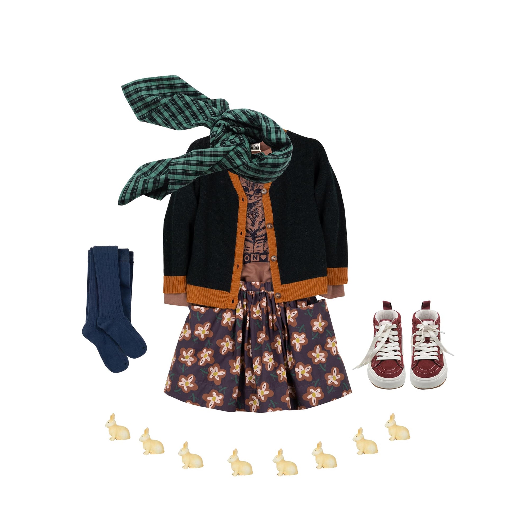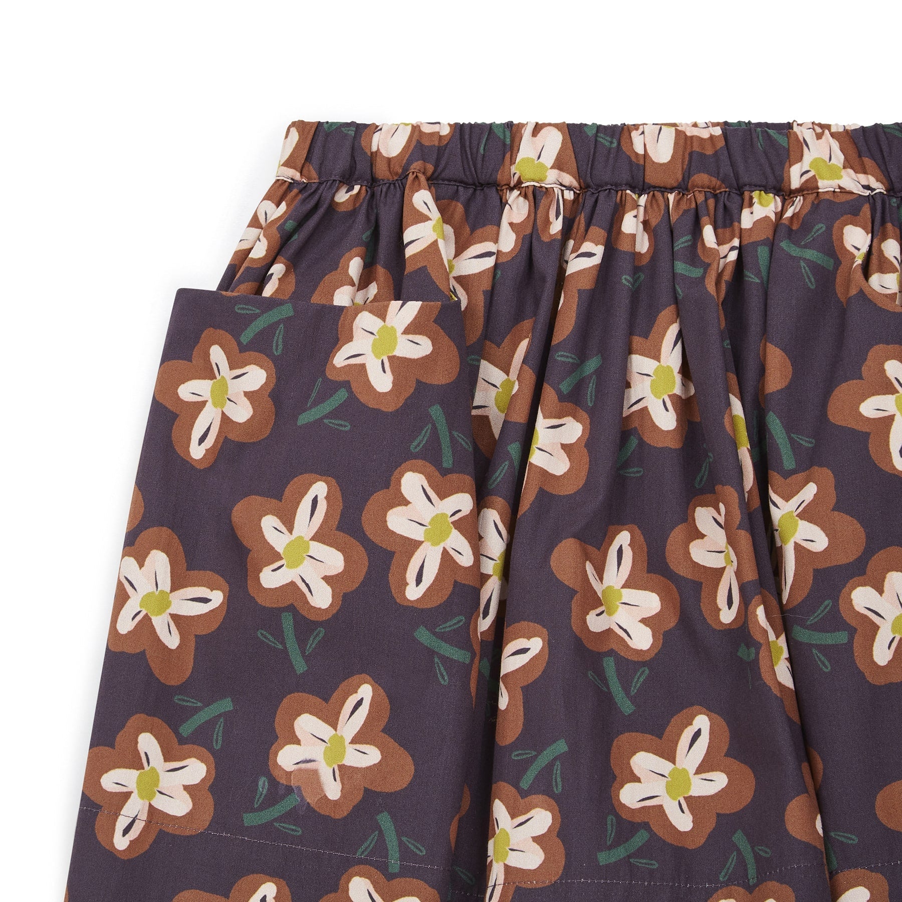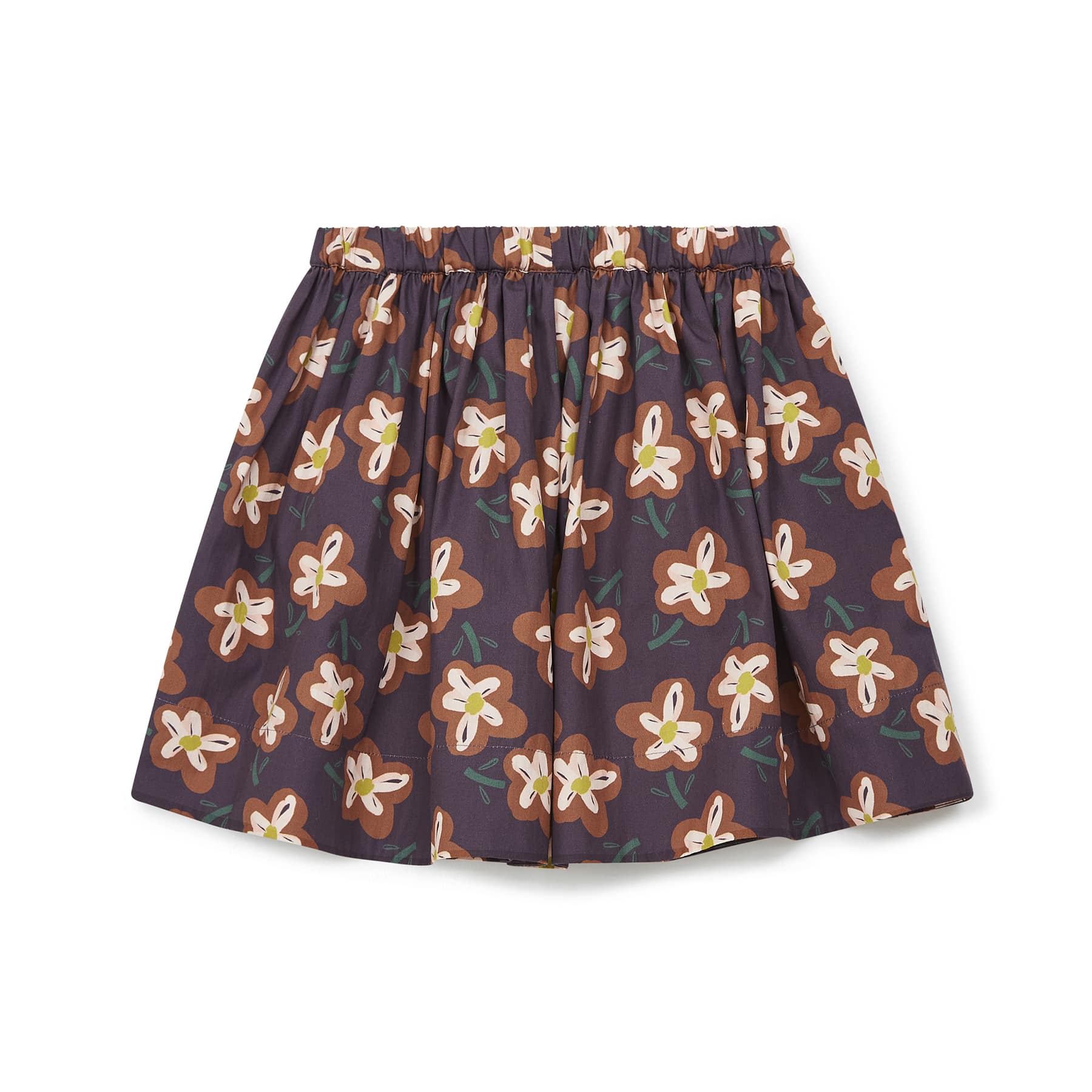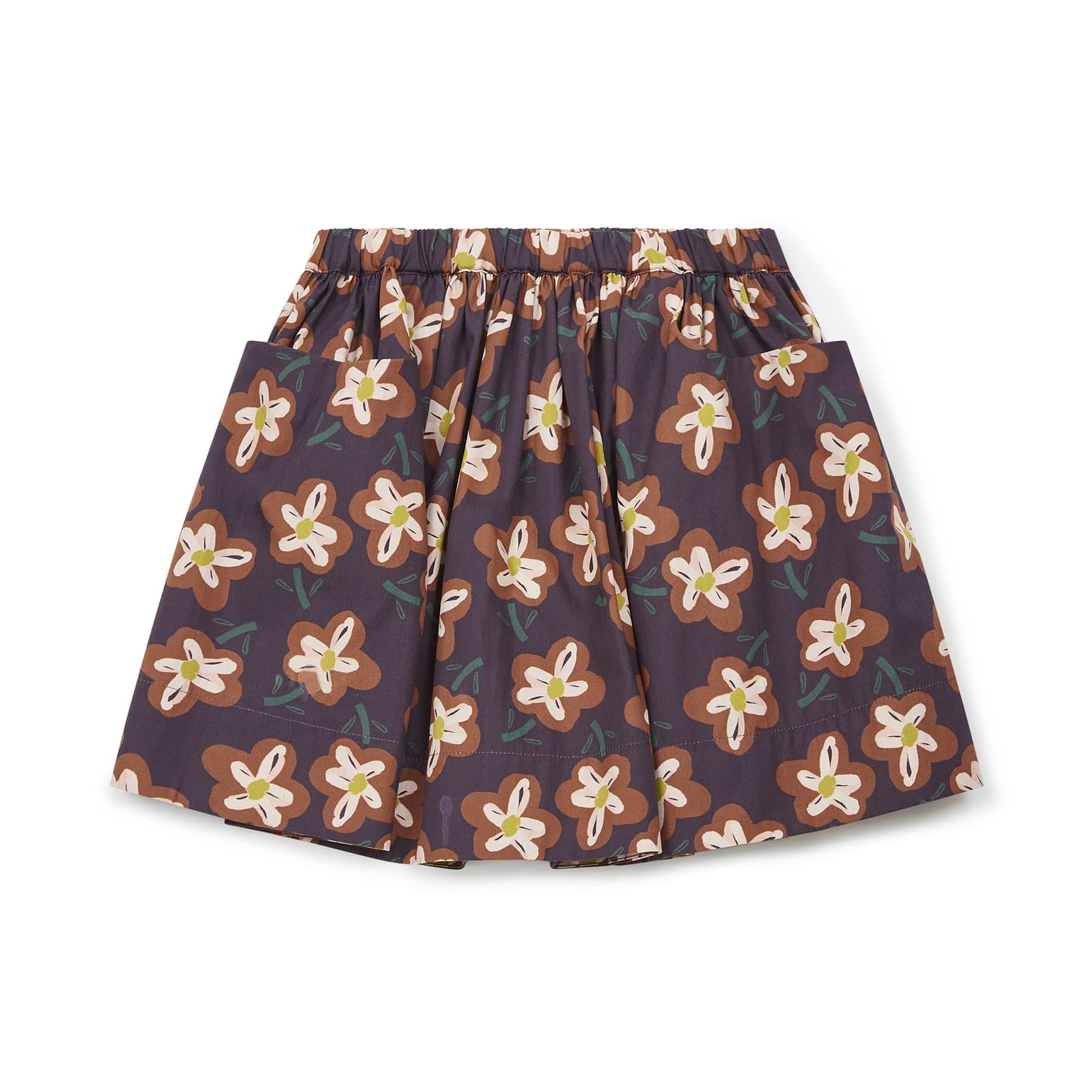 女童棕色花朵印花短裙