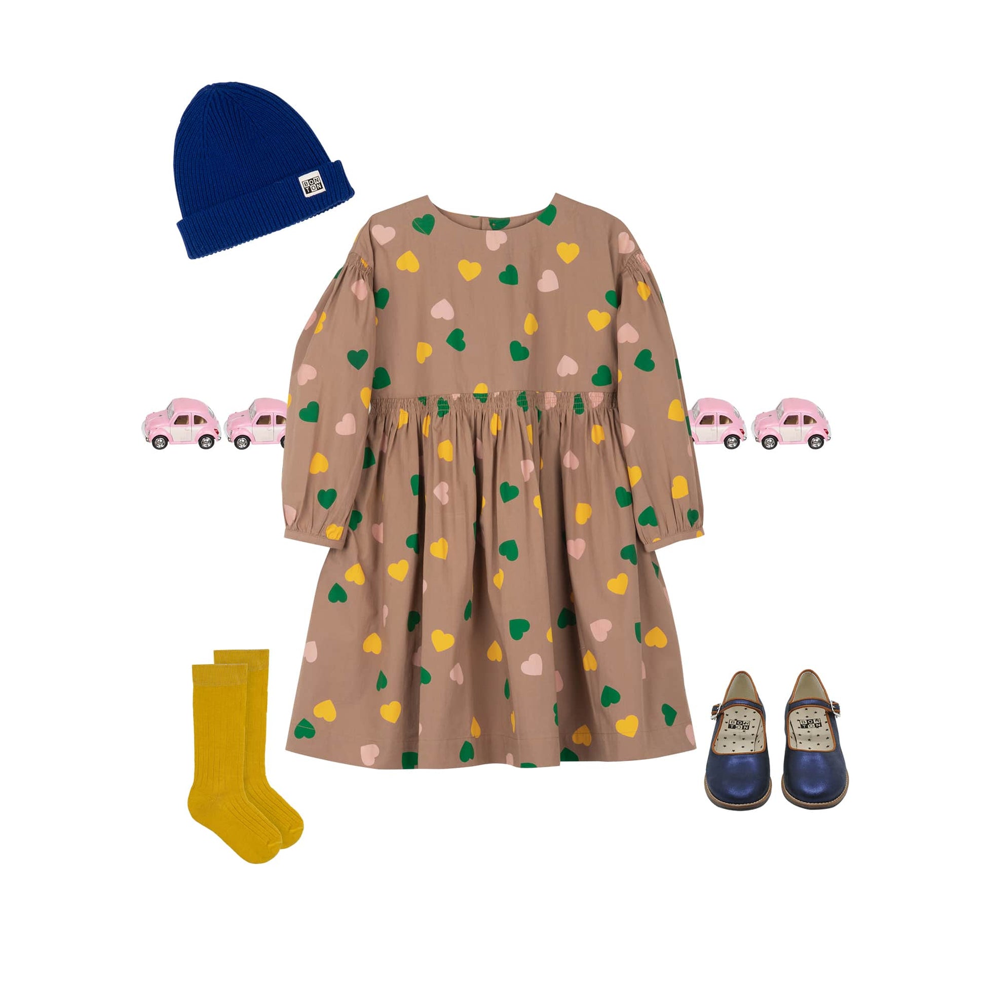 女童浅棕色心形棉连衣裙