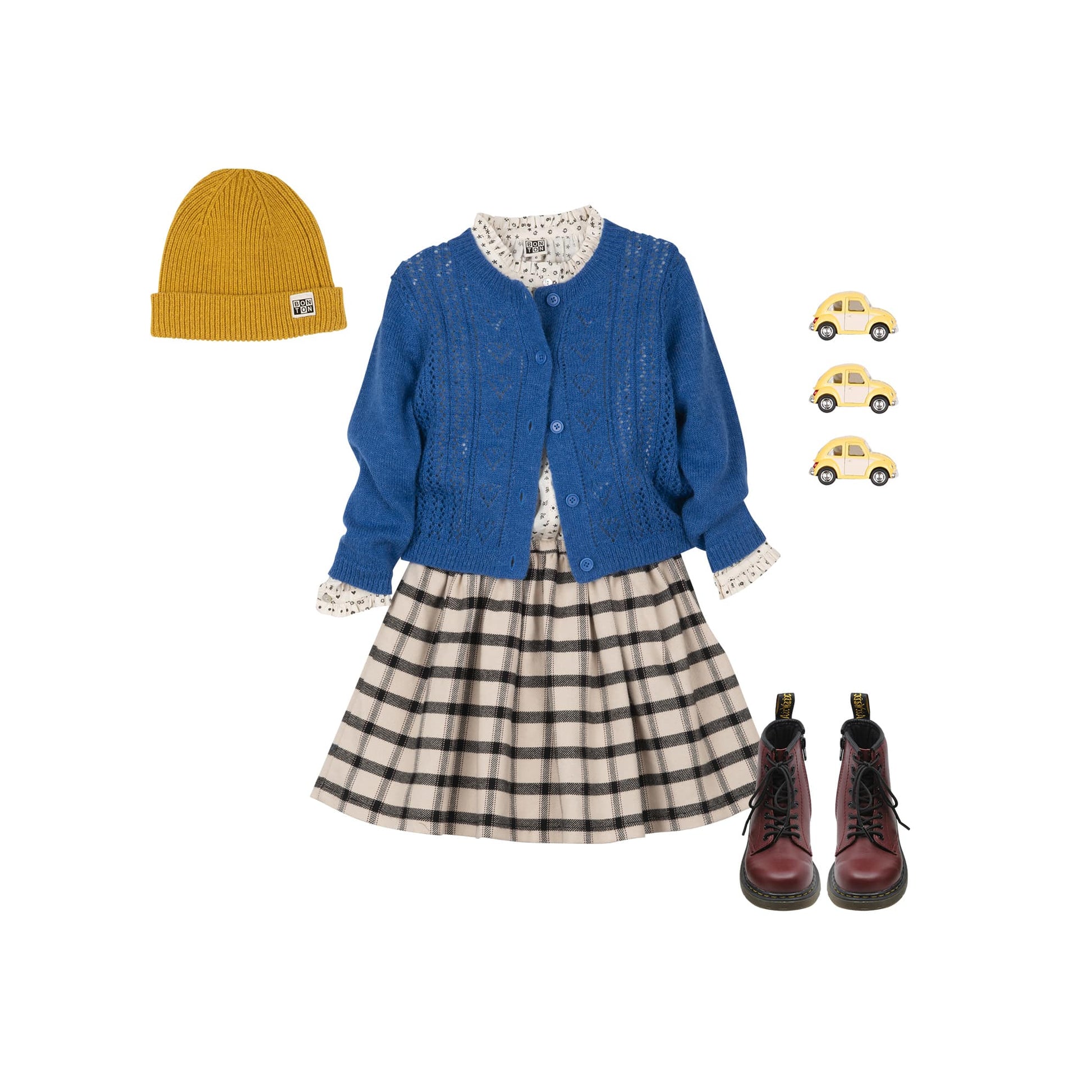 增加 女童米色格子棉短裙 的数量