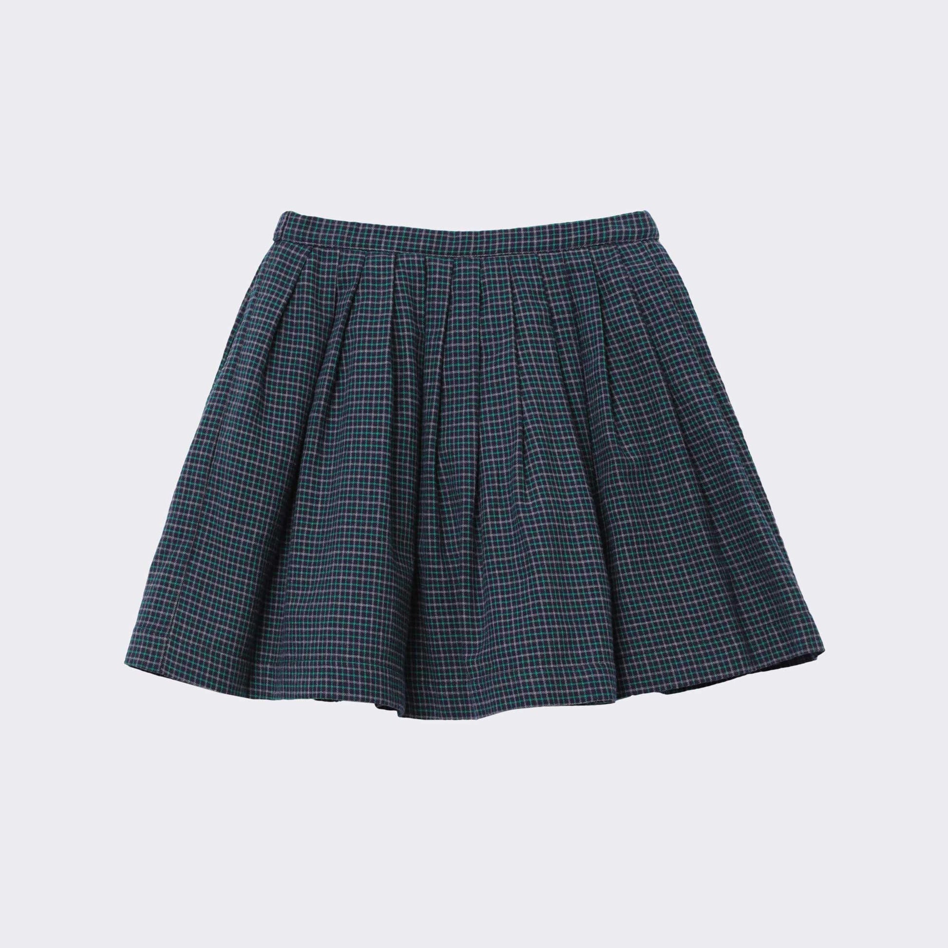 女童蓝色格子棉短裙