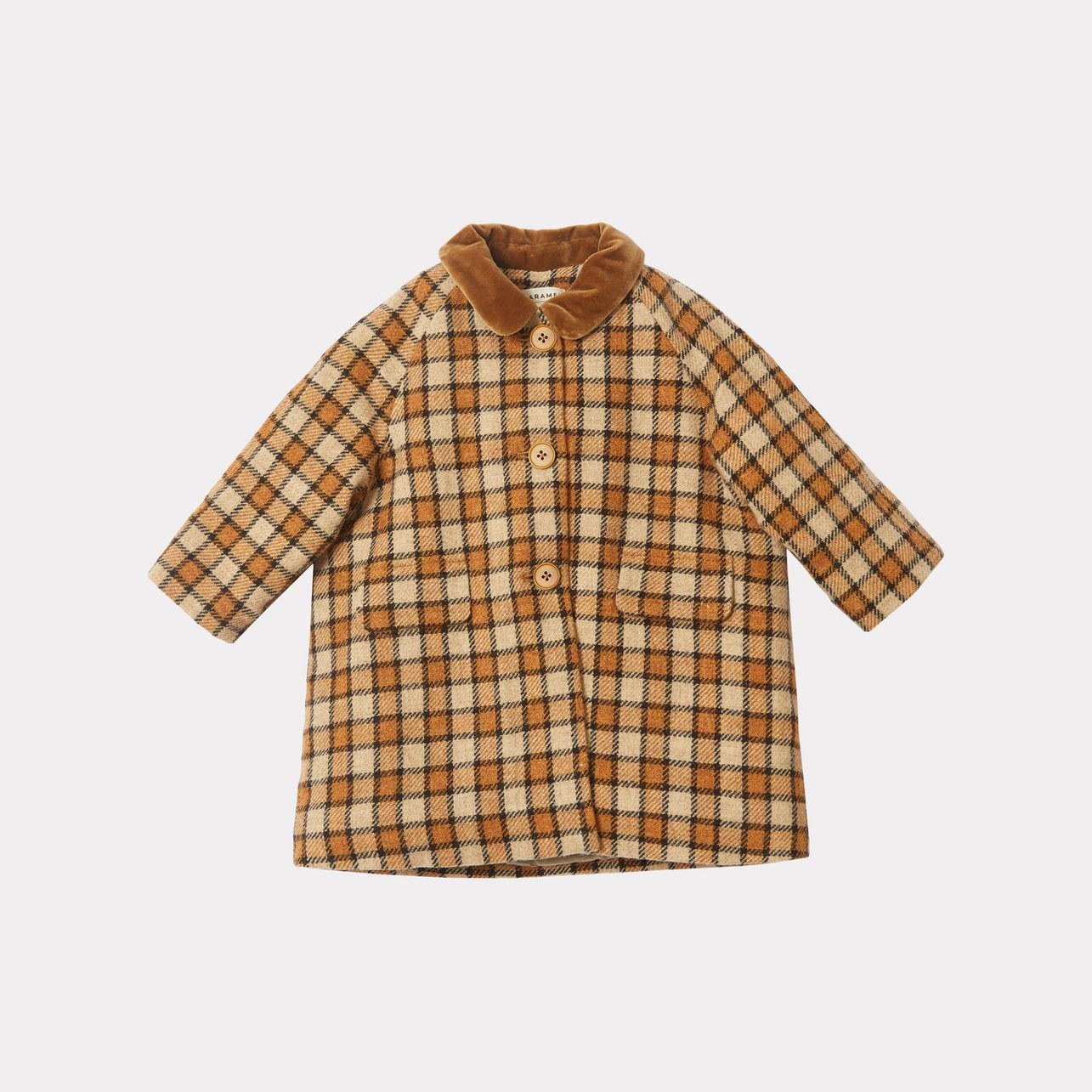 女婴棕色格子羊毛外套
