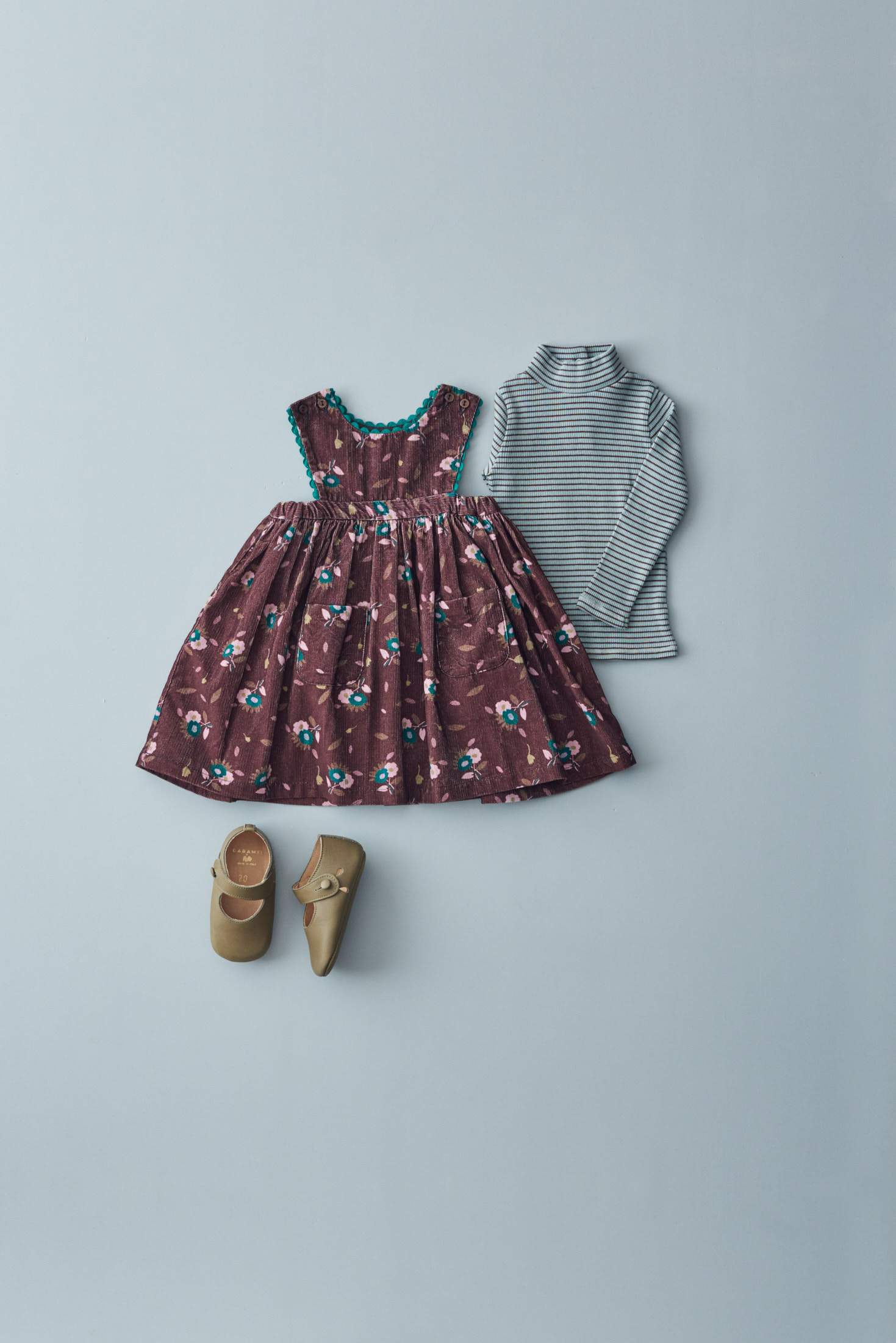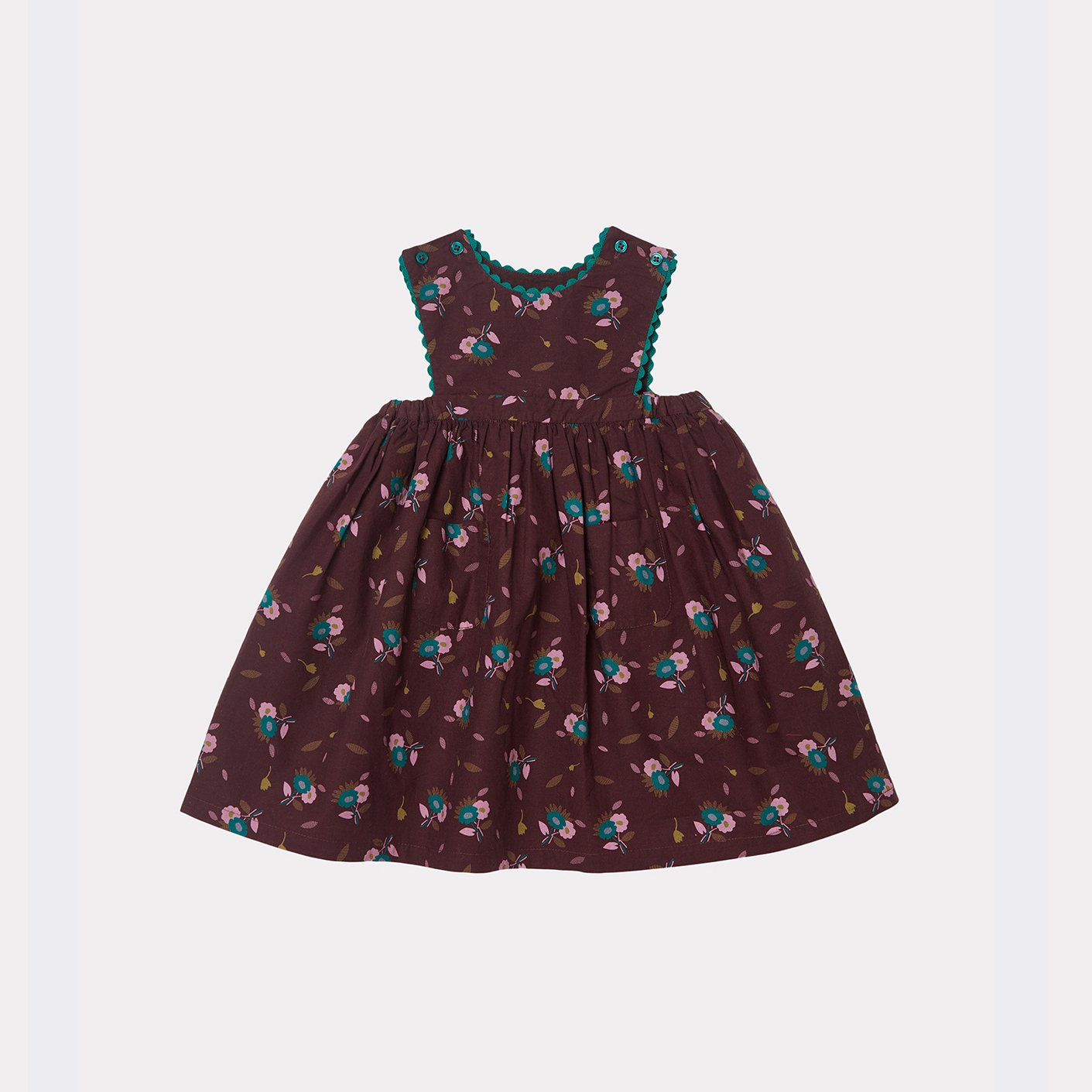 女婴棕色印花棉连衣裙