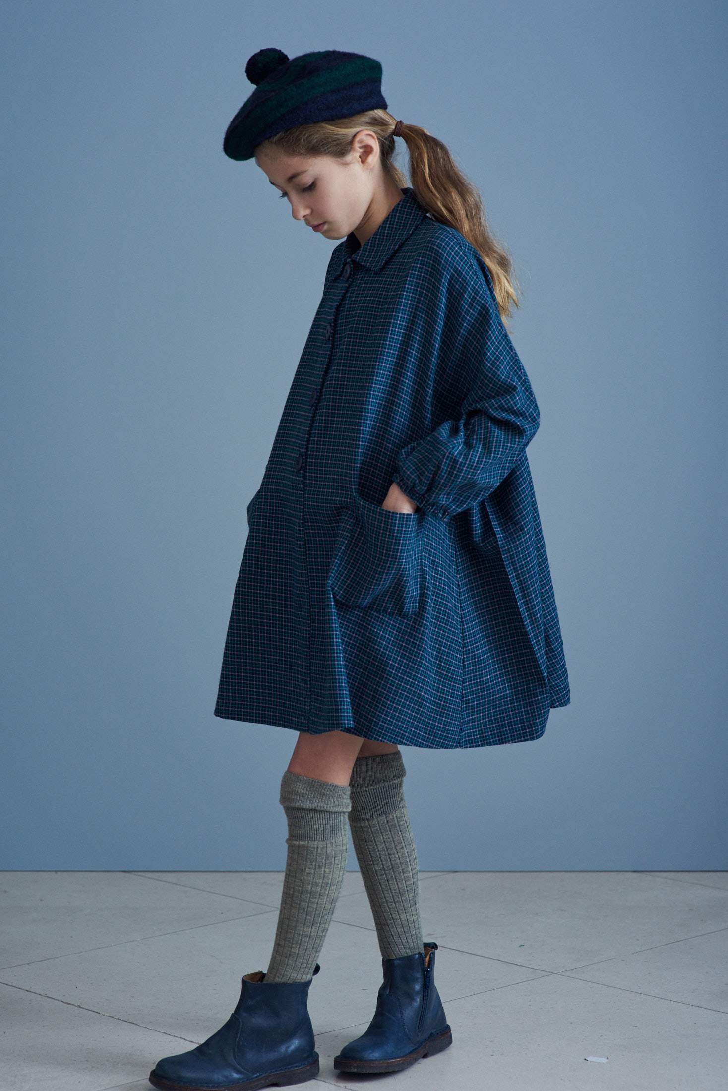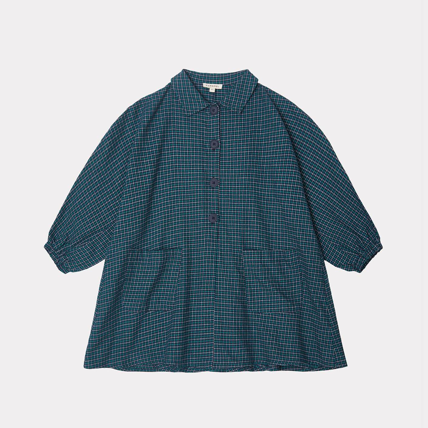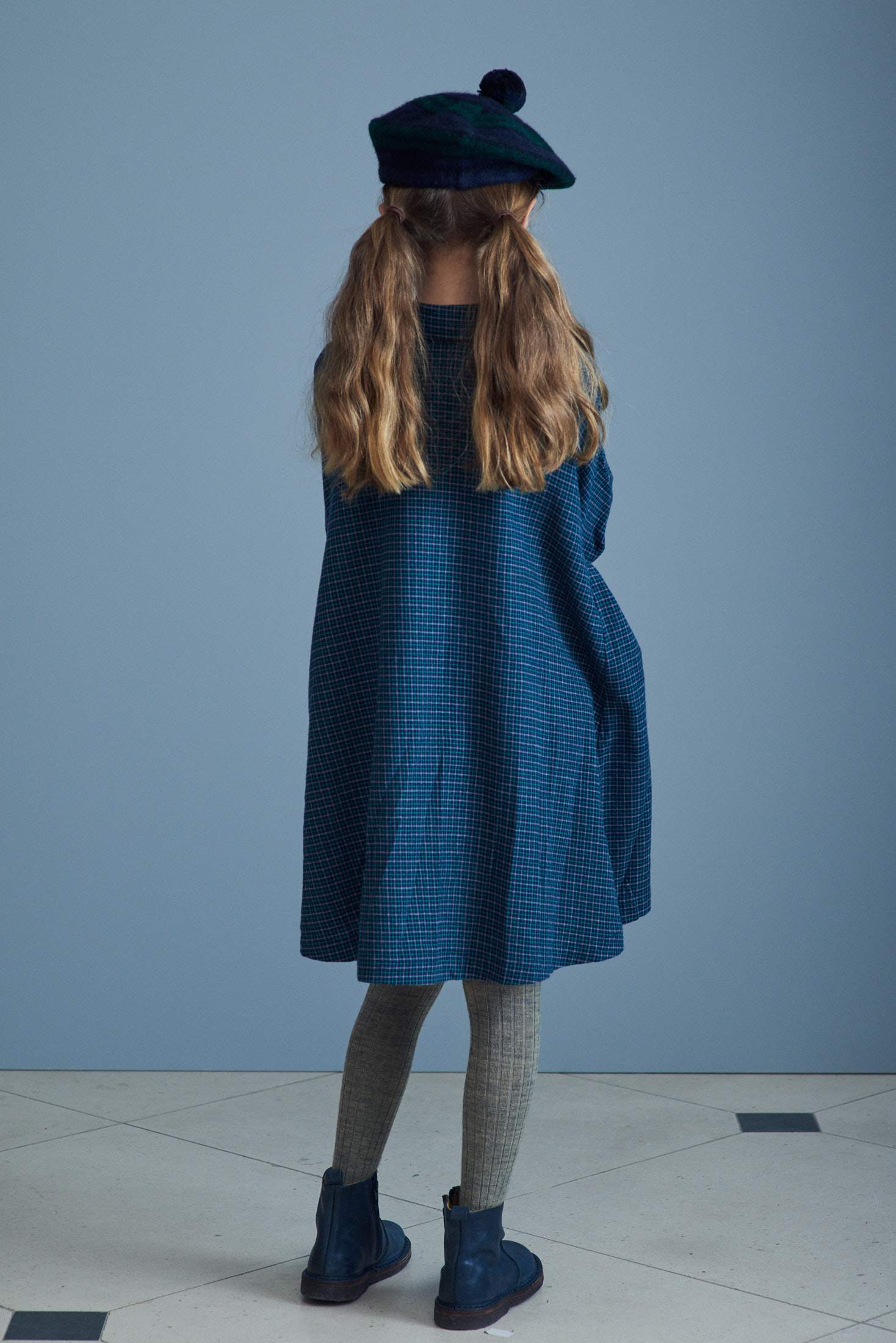 女童蓝色格子棉连衣裙