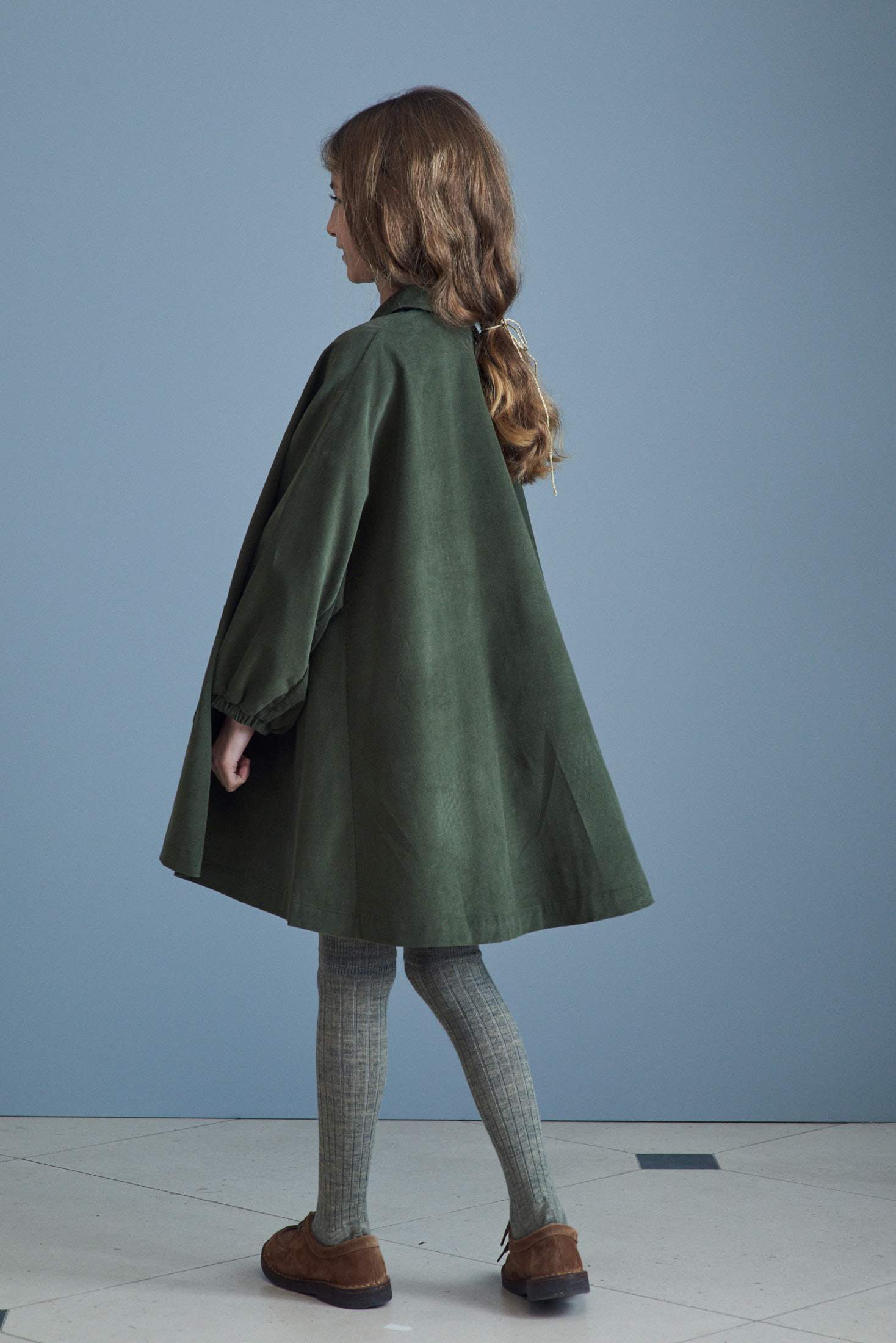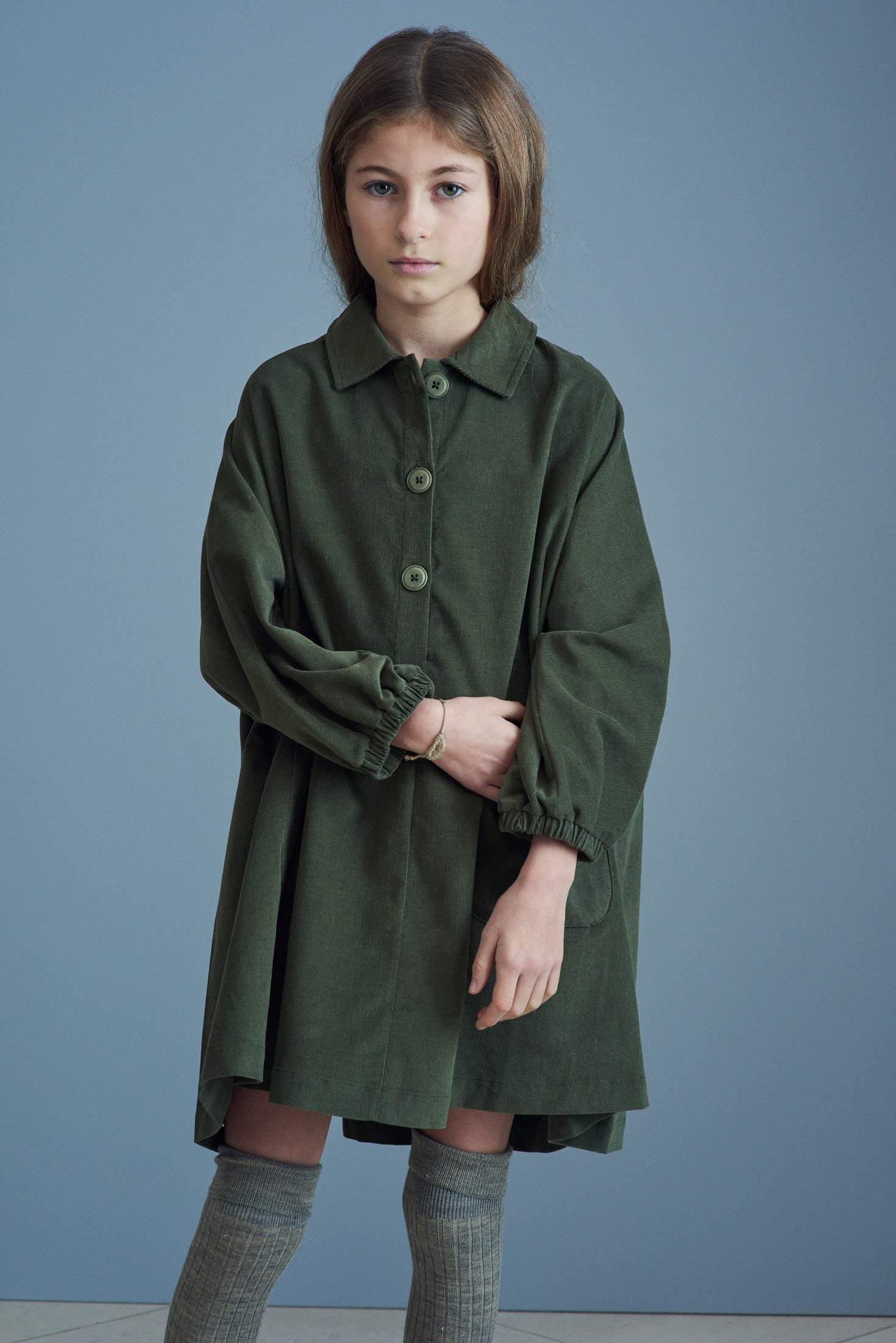 女童绿色棉连衣裙