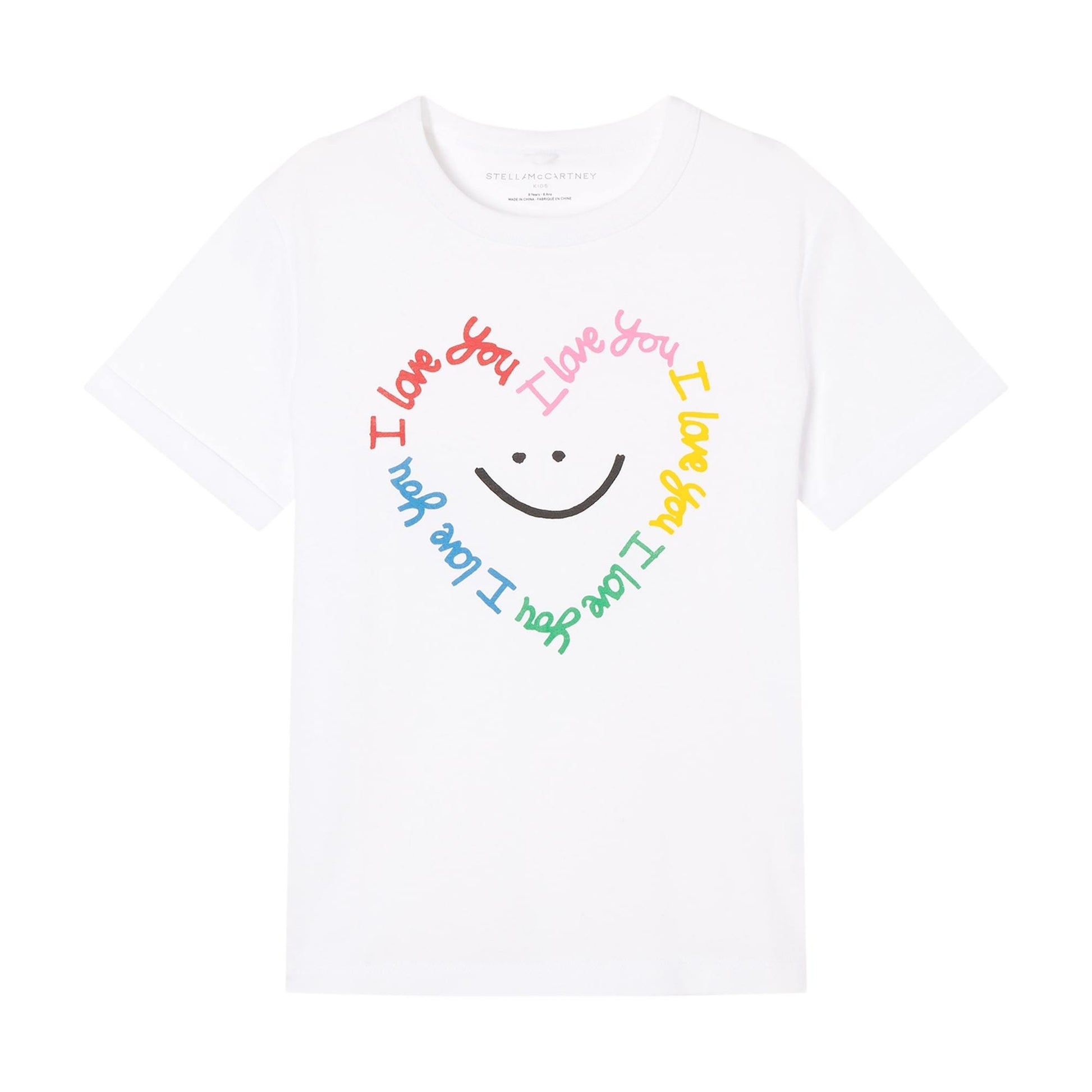 女童白色笑脸图案棉T恤