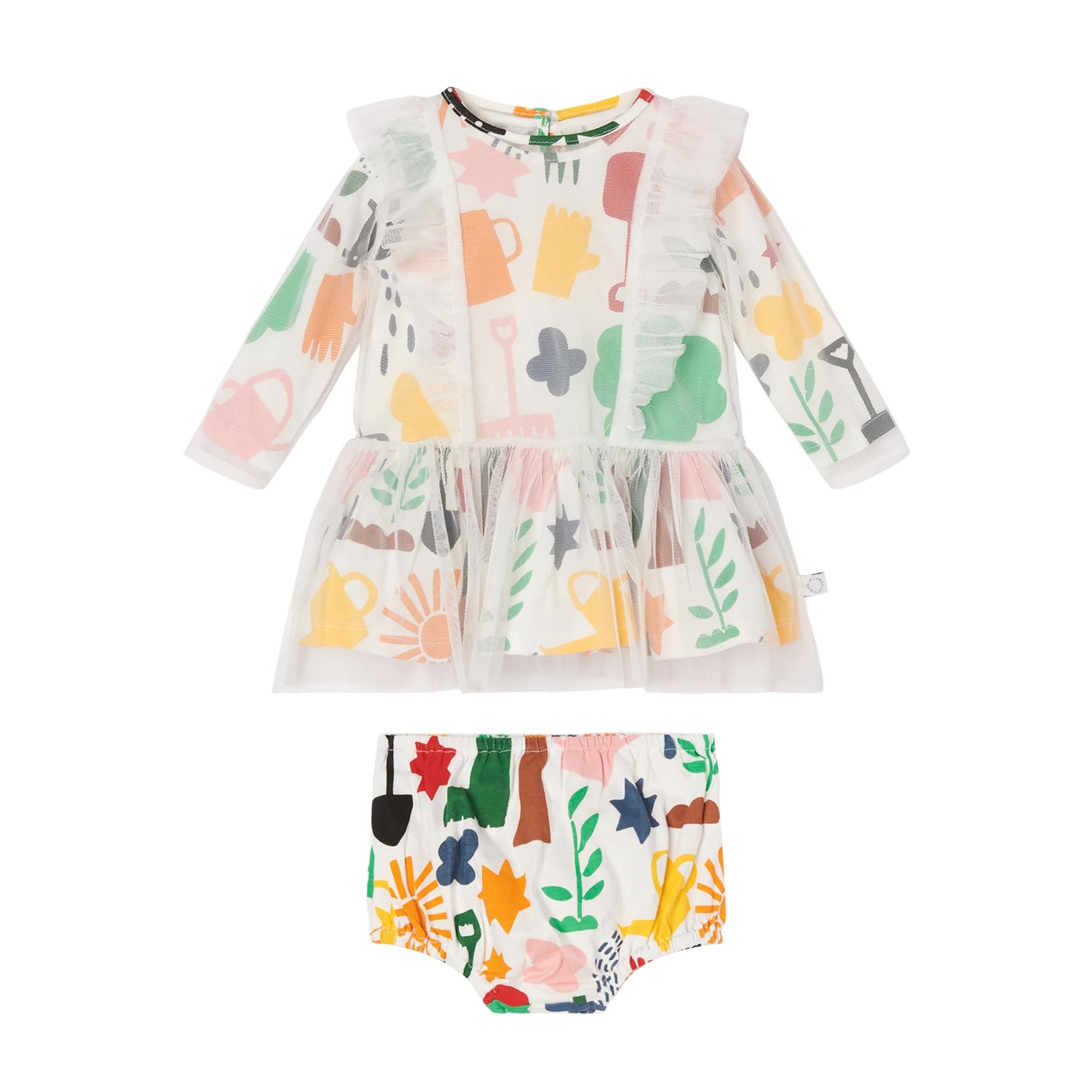 女婴白色印花连衣裙套装