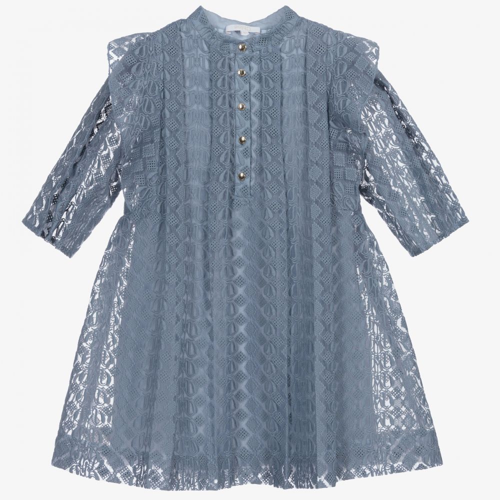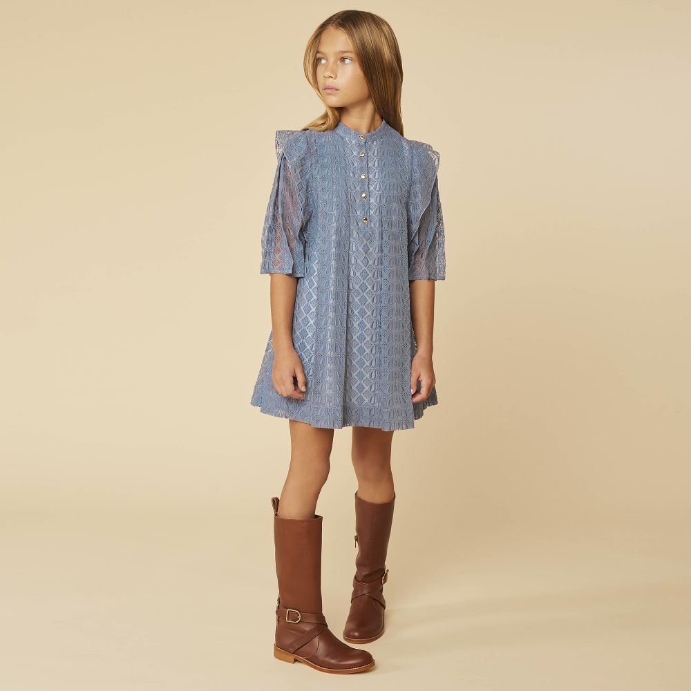女童蓝色欧根纱连衣裙