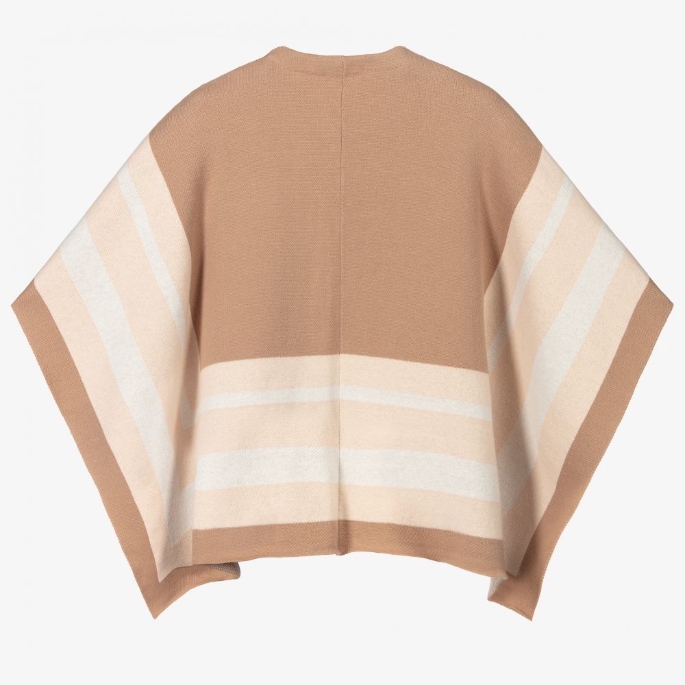 女童米色&粉色针织斗篷