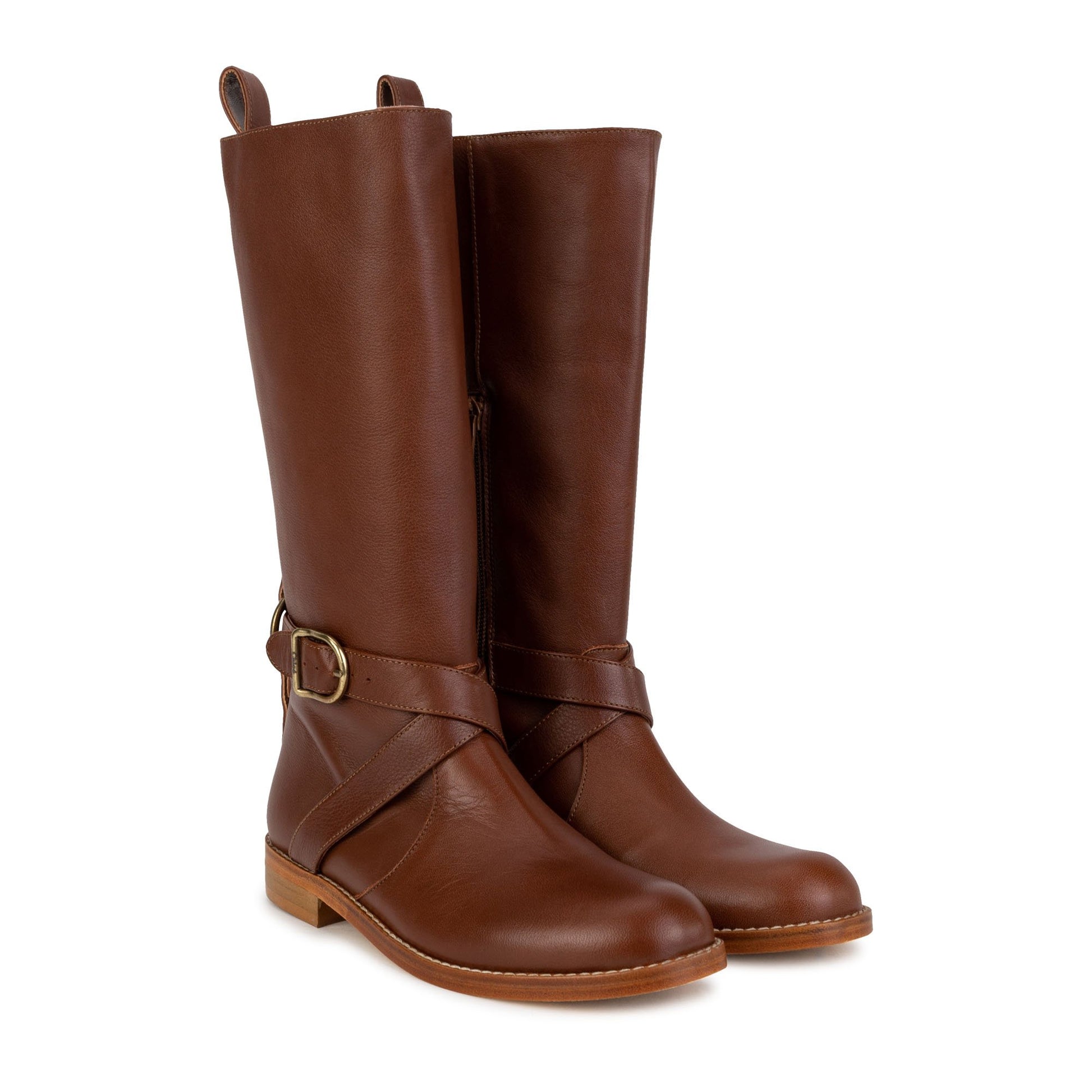女童棕色皮革长靴