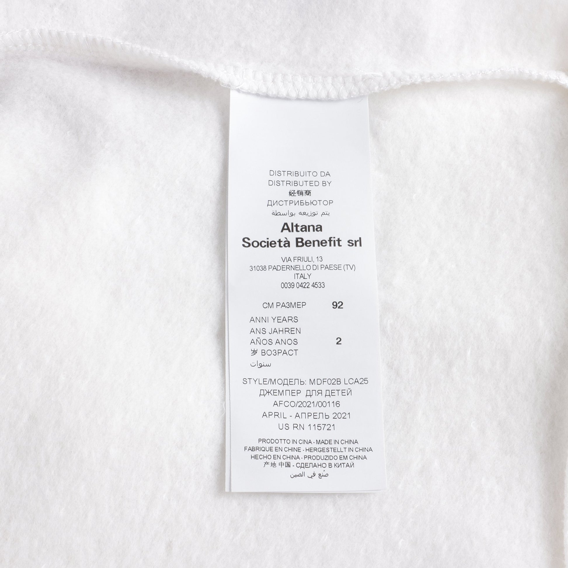 女婴白色Logo棉卫衣