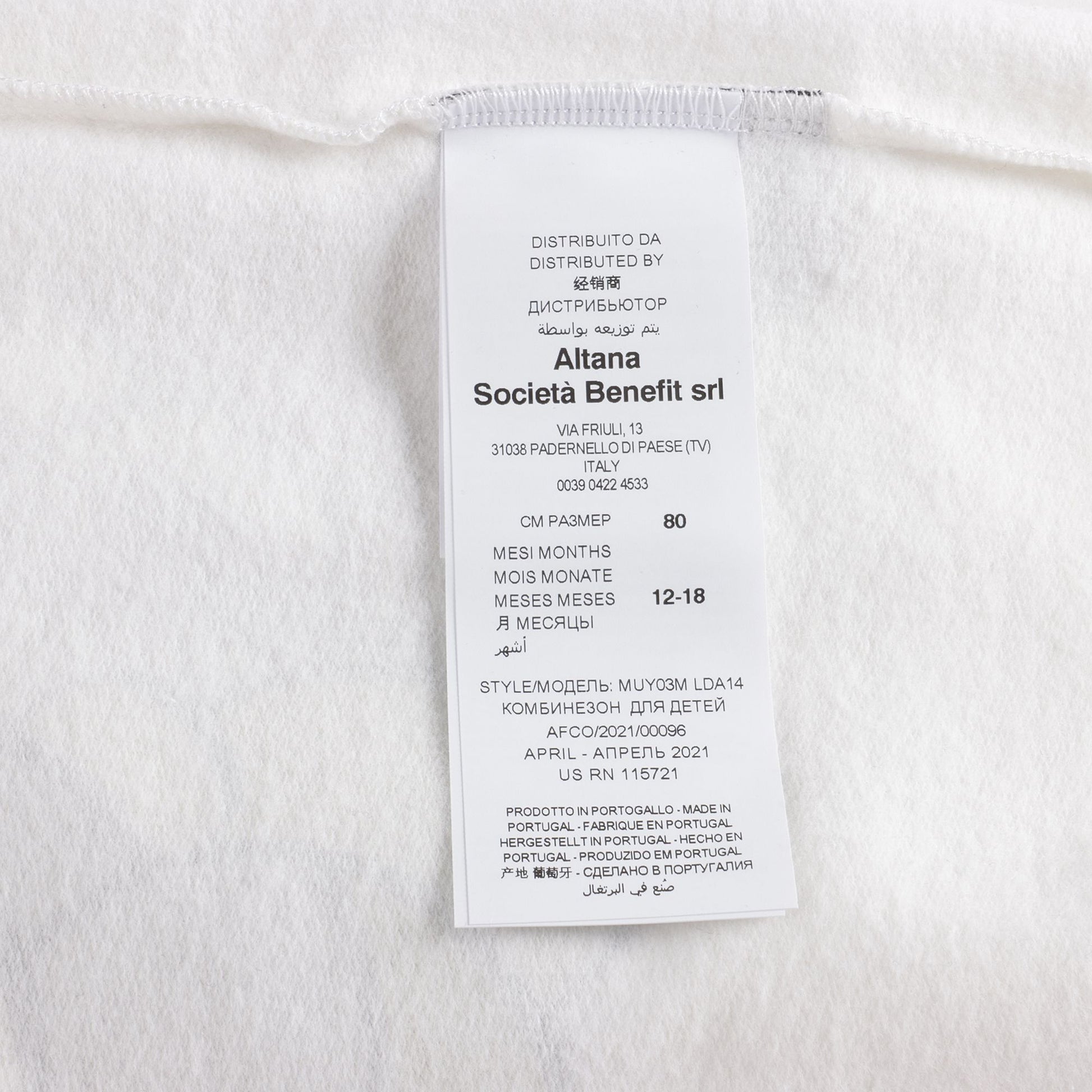 婴儿白色棉连体衣