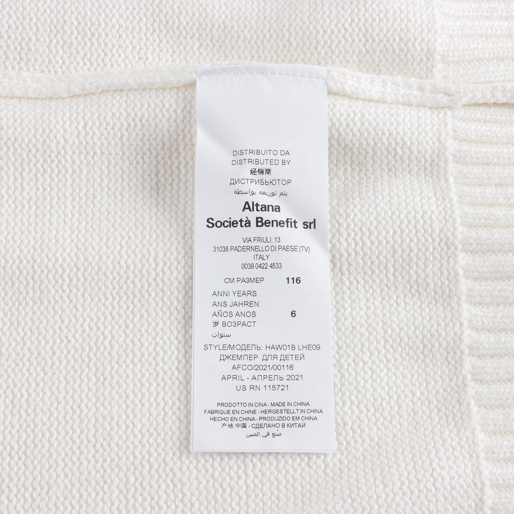 女童白色Logo棉毛衣