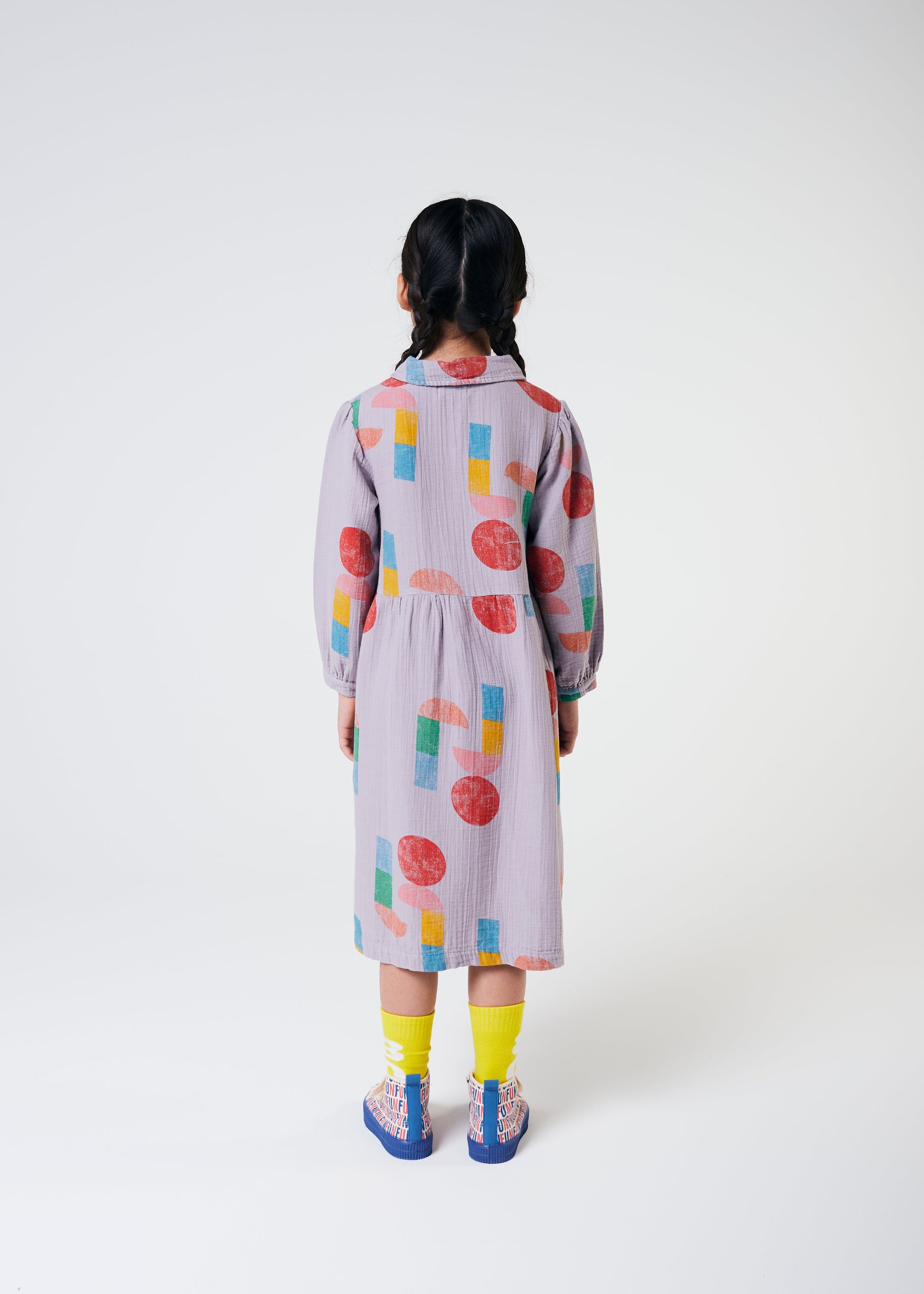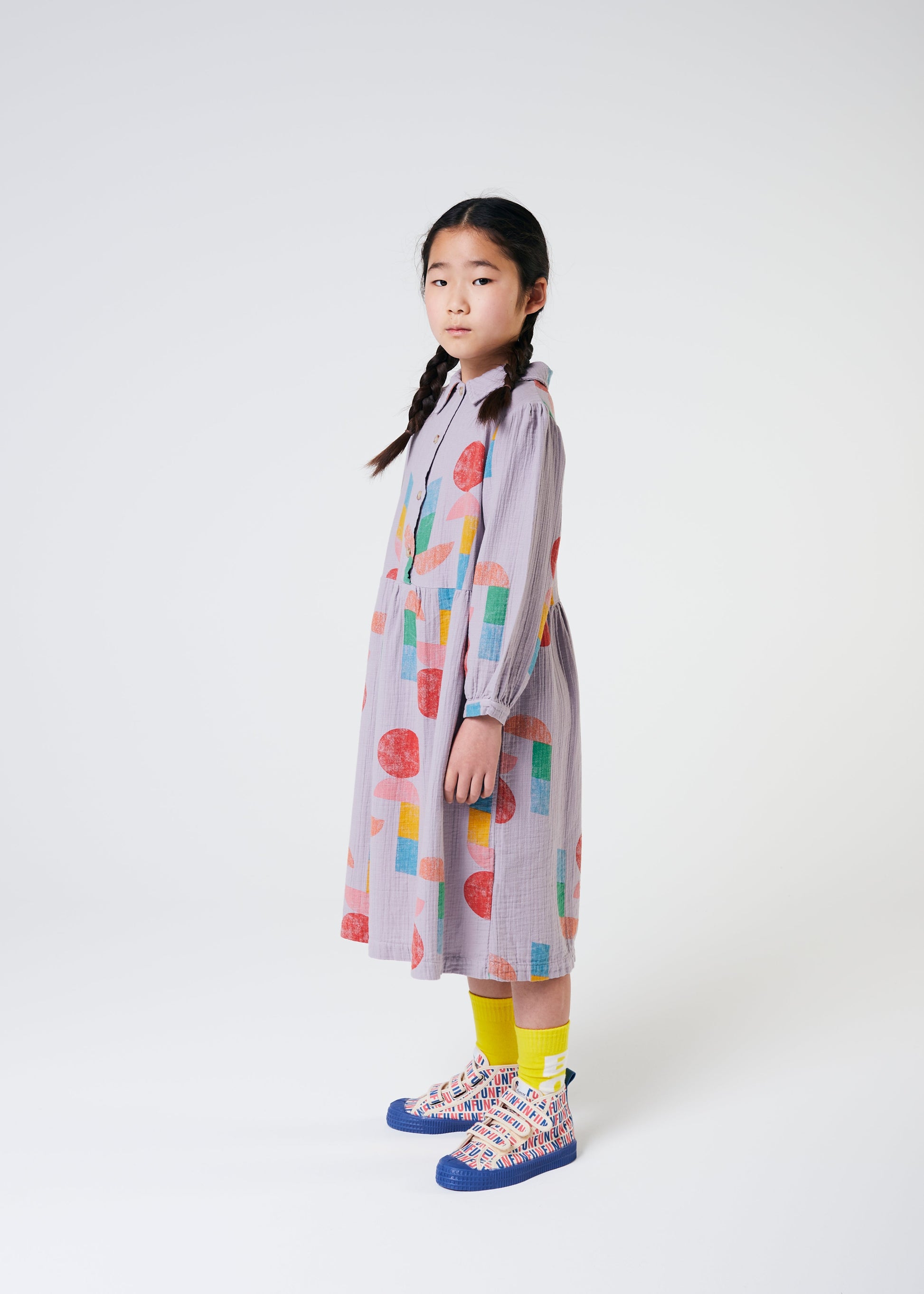 女童紫色印花棉连衣裙